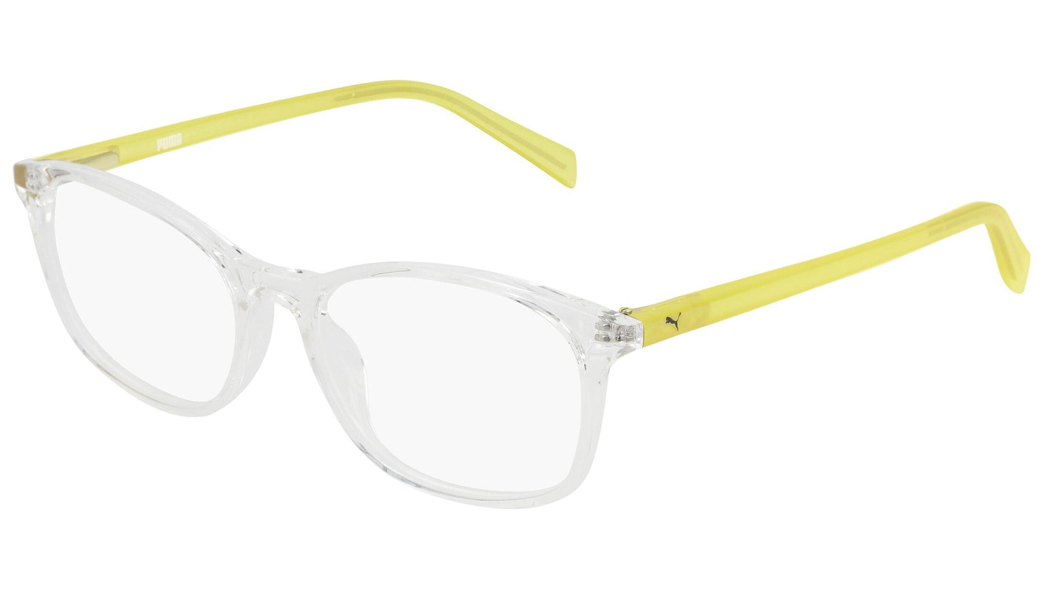 Puma for Kids model PJ0031O 008 shiny crystal optical frame. These kids are on the move. They roam the streets in search for recognition, emotions and daily kicks: celebrating with friends at the Luna Park, a thrilling jump, a trick on a skateboard, or simply seeing something new.