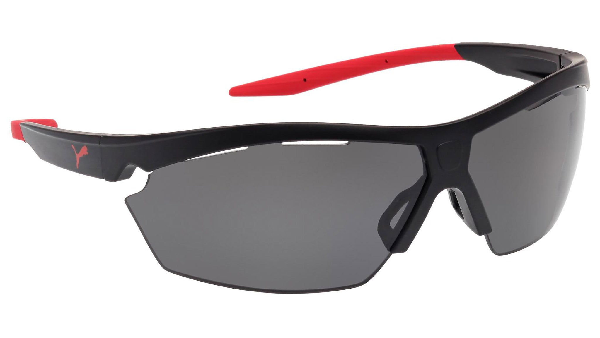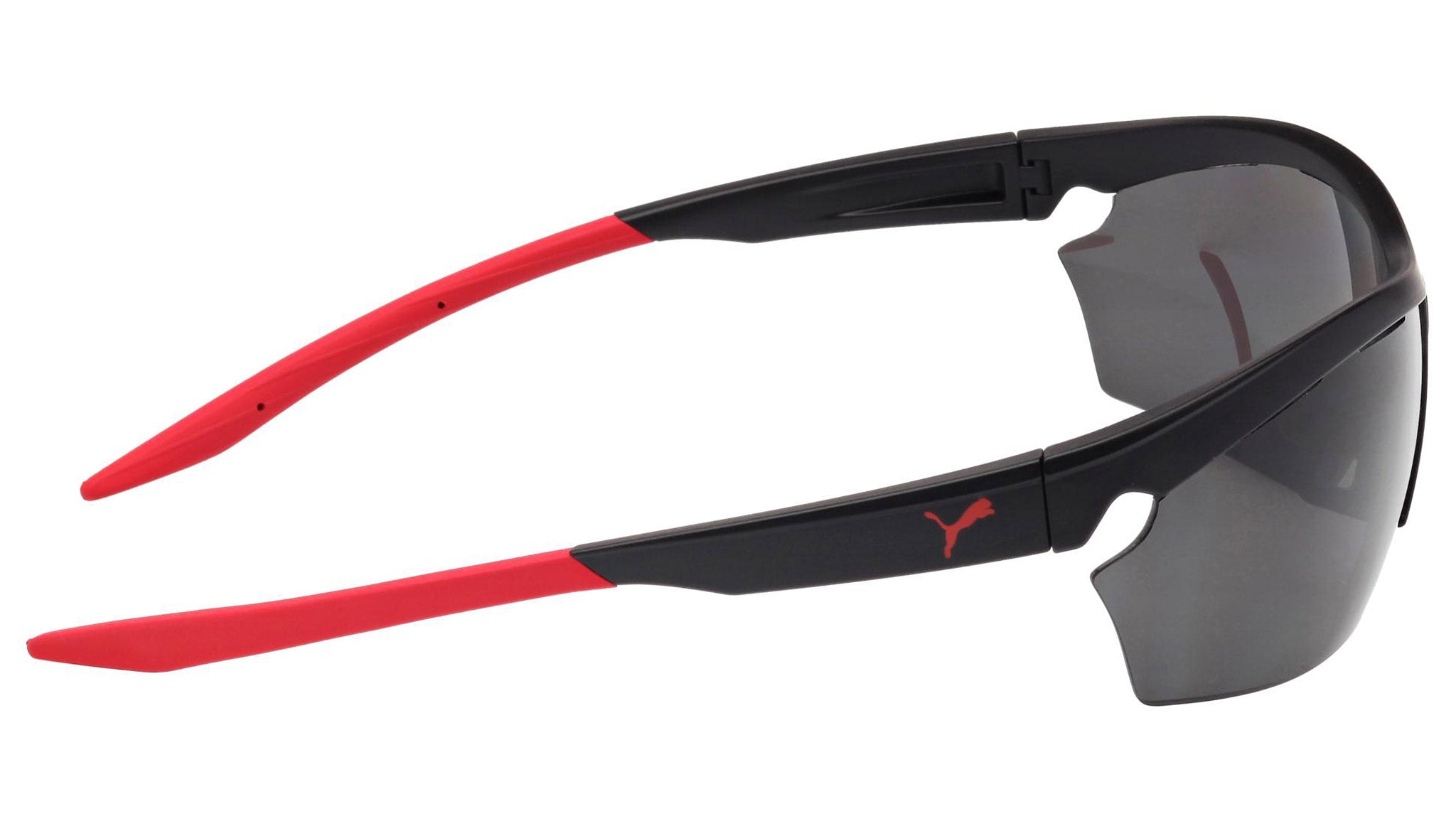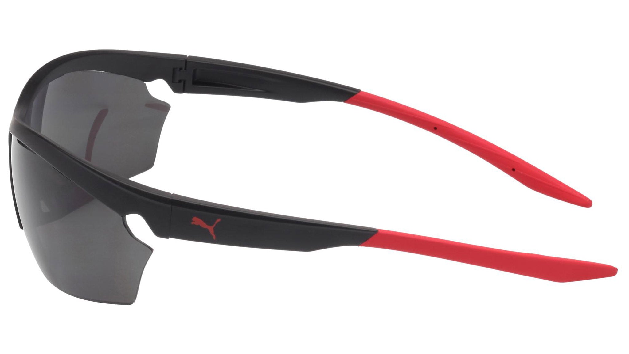 Puma Eyewear model PU0005S 001 matte black sunglasses, with grey lenses. Puma Eyewear merges performance and trends, innovation and fashion, sport and lifestyle, for those who see beyond trends and challenge the norm to move things forward.