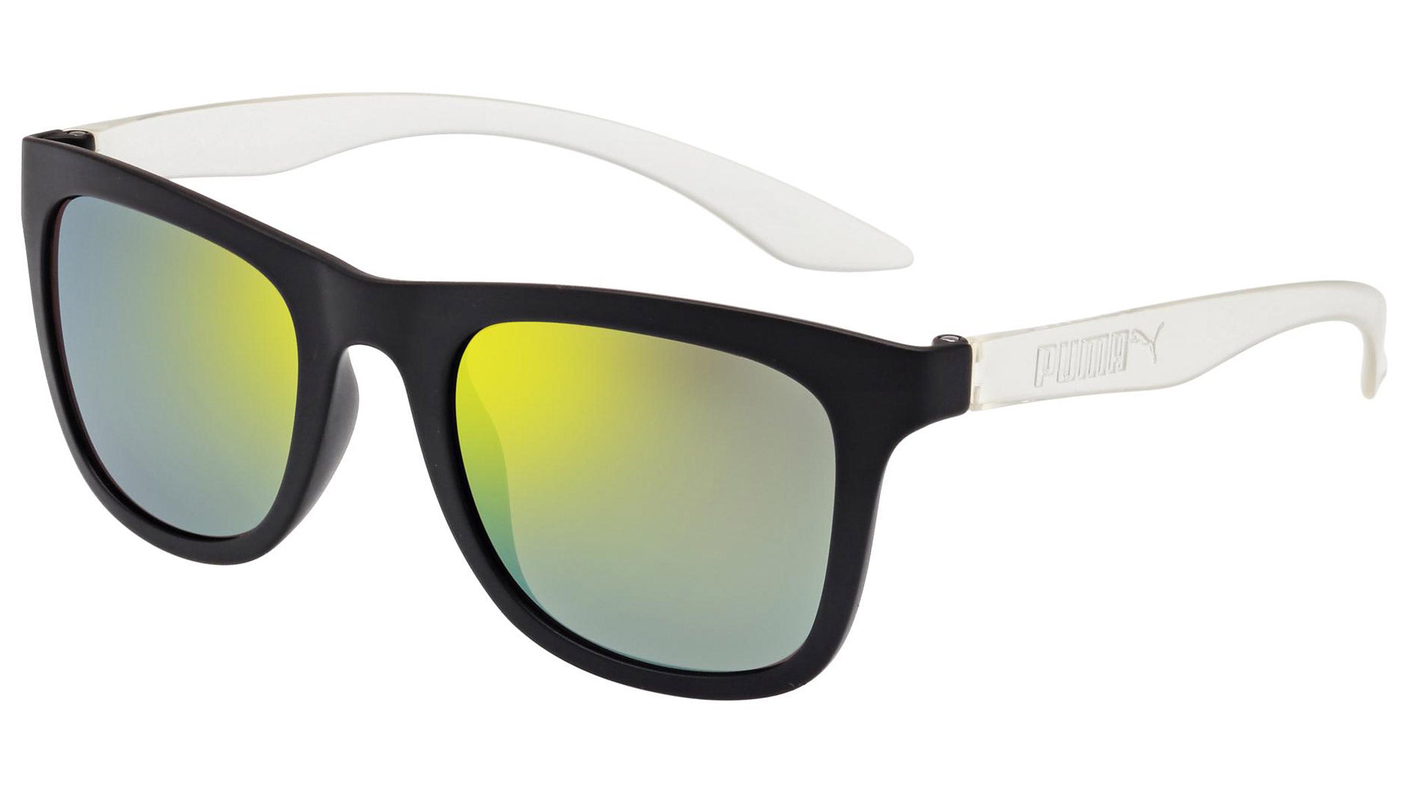 Puma Eyewear model PU0016S 001 matte black sunglasses, with yellow lenses. Puma Eyewear merges performance and trends, innovation and fashion, sport and lifestyle, for those who see beyond trends and challenge the norm to move things forward.