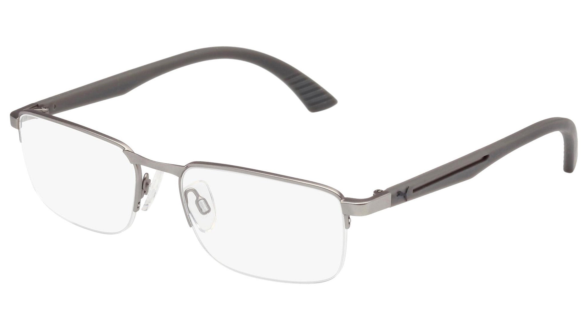 Puma Eyewear model PU0020O 003 semimatte ruthenium optical frame. Designed to fit the movers and the shakers, who seek a dynamic lifestyle. Puma Eyewear is for the hustler, the bold and the Active, for those who see beyond trends and challenge the norm to move things forward.