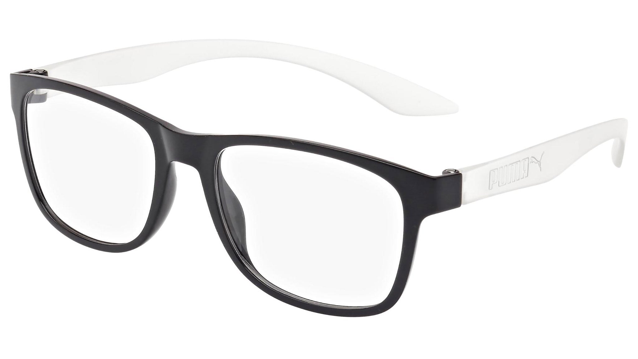 Puma Eyewear model PU0035O 001 shiny black optical frame. Designed to fit the movers and the shakers, who seek a dynamic lifestyle. Puma Eyewear is for the hustler, the bold and the Active, for those who see beyond trends and challenge the norm to move things forward.