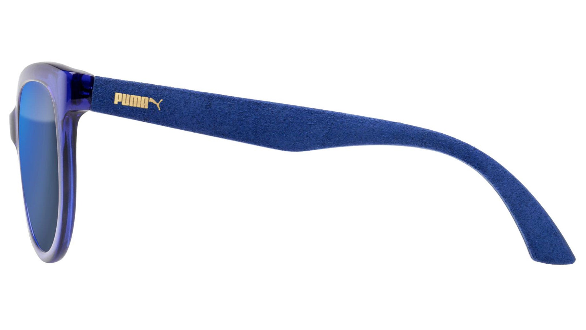 Puma Eyewear model PU0041S 005 shiny transparent electric blue sunglasses, with blue lenses. Puma Eyewear merges performance and trends, innovation and fashion, sport and lifestyle, for those who see beyond trends and challenge the norm to move things forward.