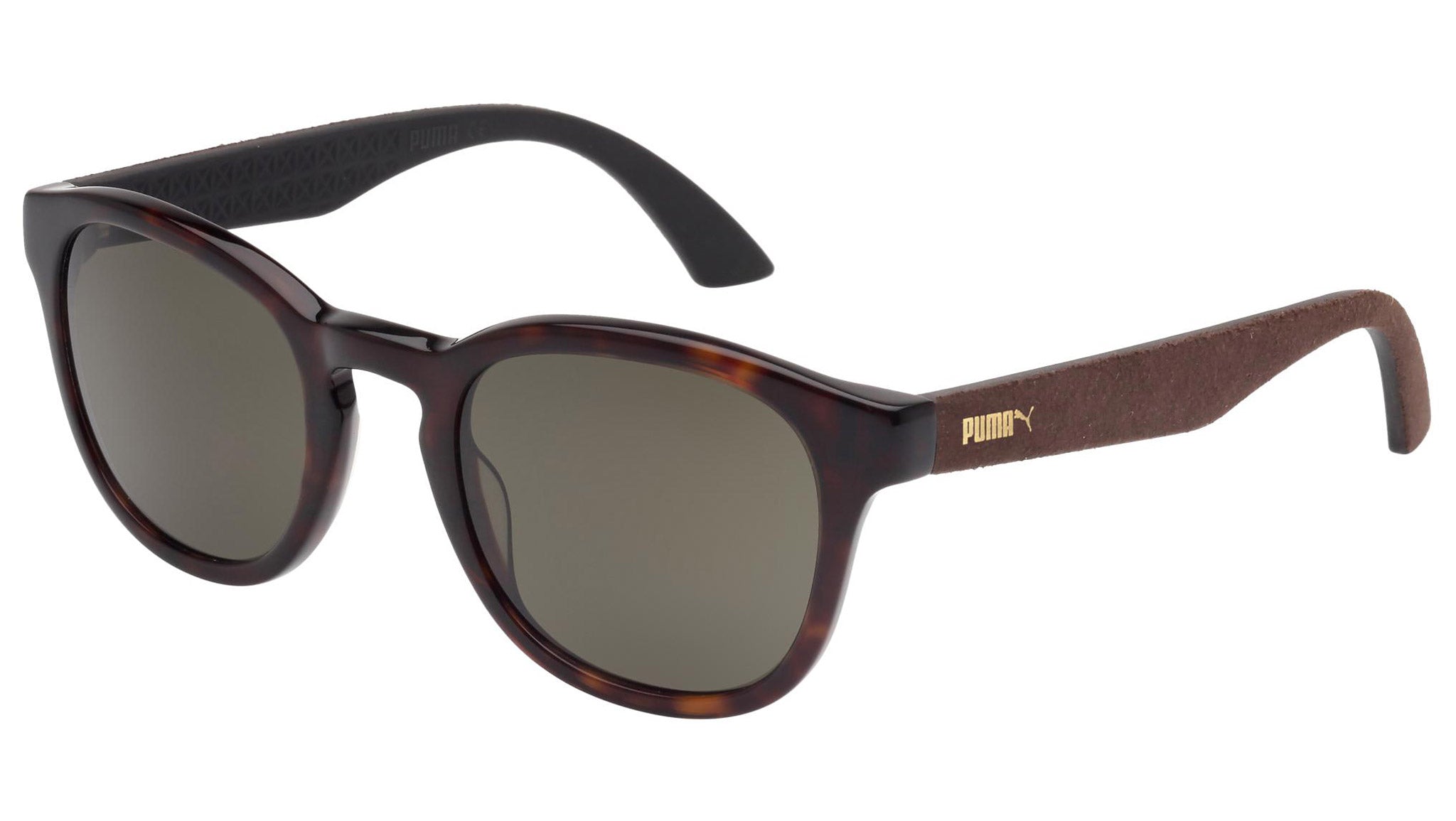 Puma Eyewear model PU0042S 003 shiny havana sunglasses, with green lenses. Puma Eyewear merges performance and trends, innovation and fashion, sport and lifestyle, for those who see beyond trends and challenge the norm to move things forward.