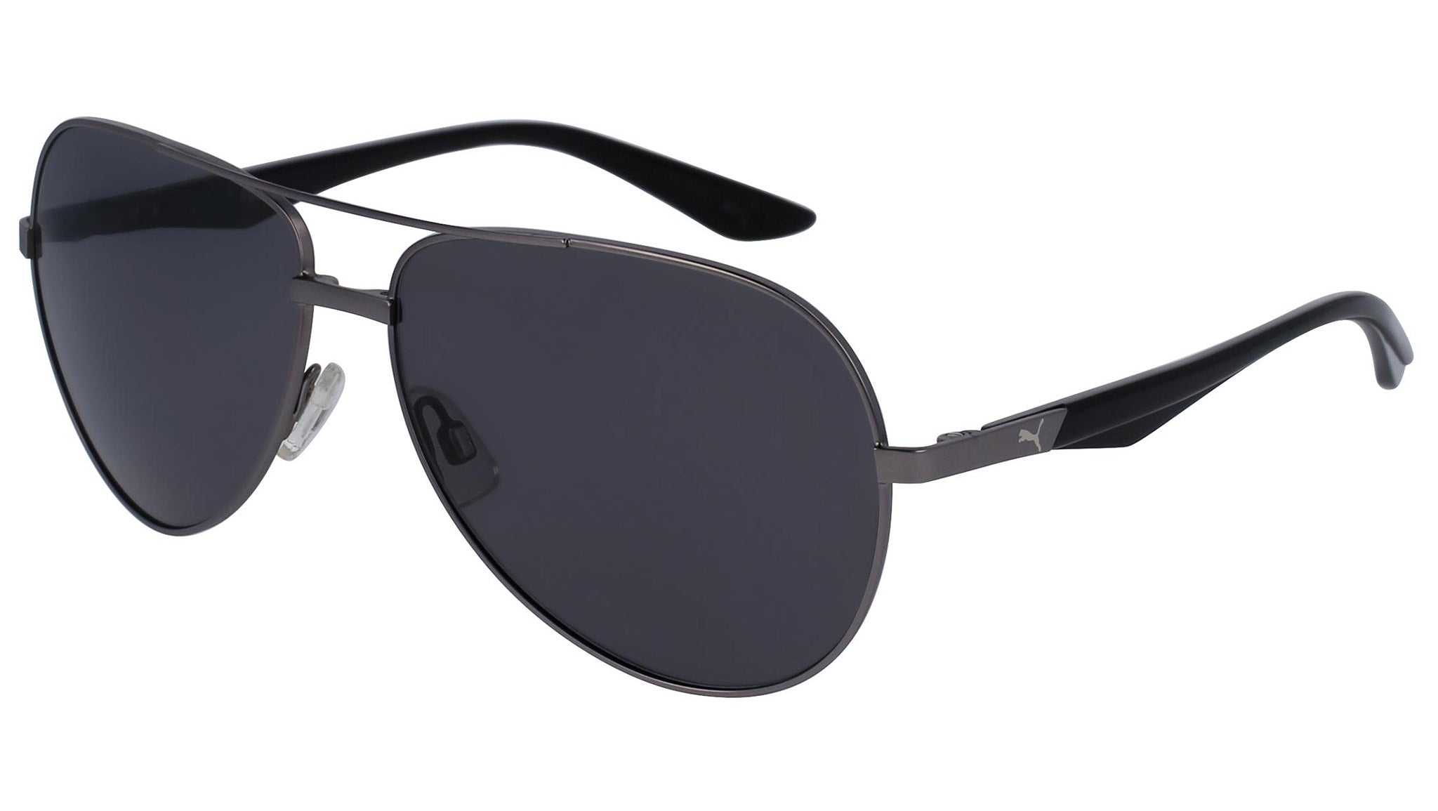 Puma Eyewear model PU0062S 001 semimatte dark ruthenium sunglasses, with grey lenses. Puma Eyewear merges performance and trends, innovation and fashion, sport and lifestyle, for those who see beyond trends and challenge the norm to move things forward.