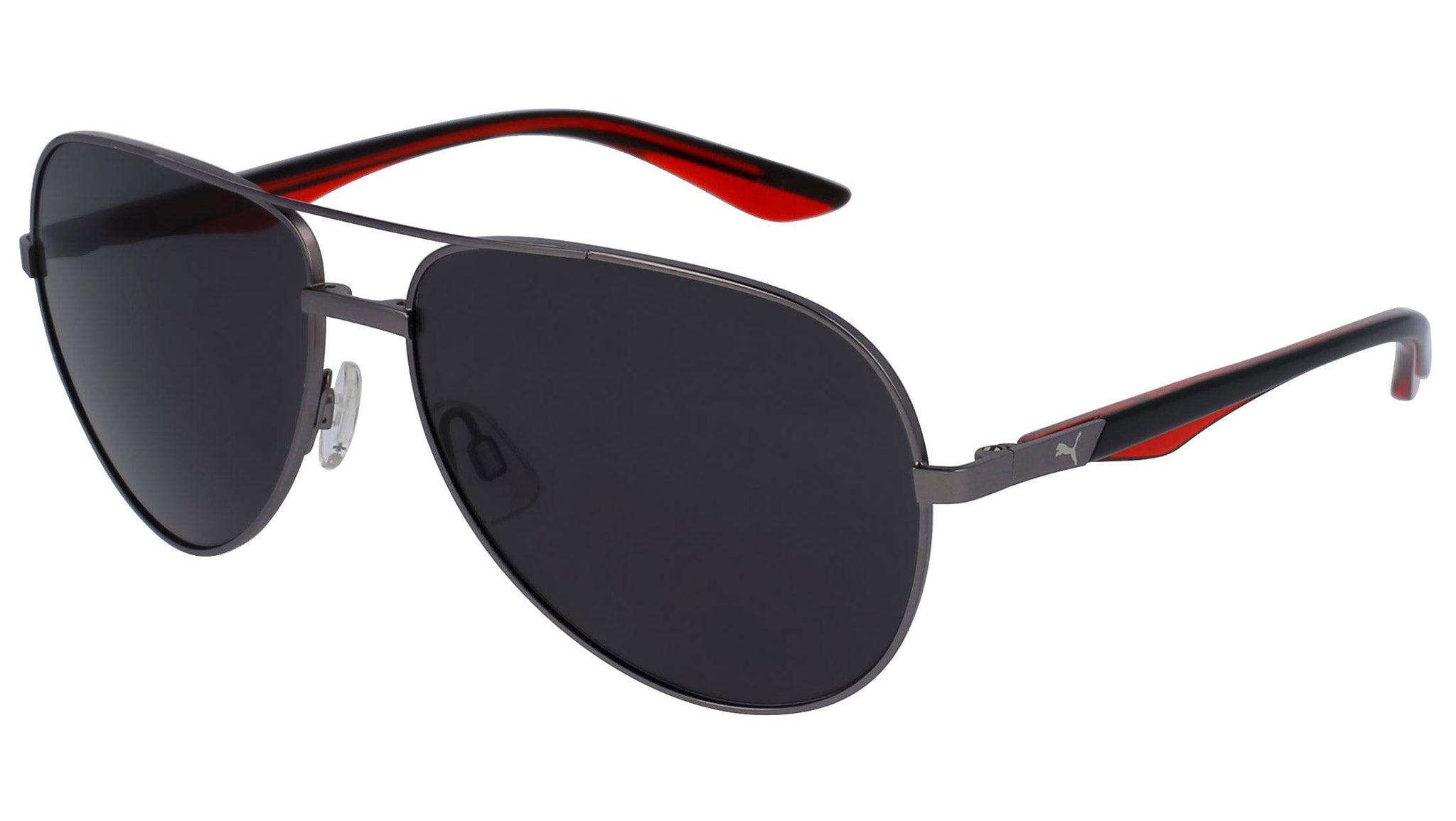 Puma Eyewear model PU0062S 003 semimatte dark ruthenium sunglasses, with grey lenses. Puma Eyewear merges performance and trends, innovation and fashion, sport and lifestyle, for those who see beyond trends and challenge the norm to move things forward.
