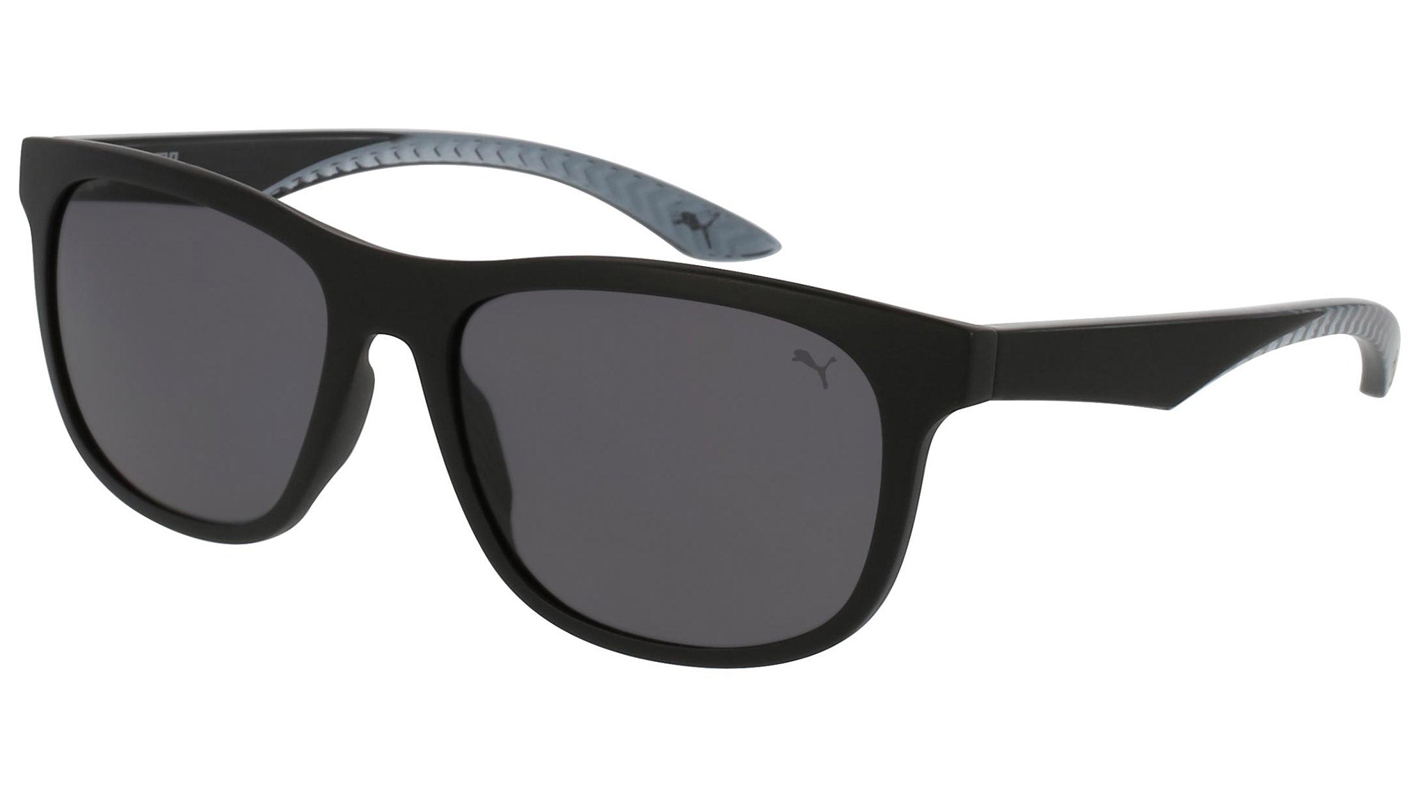 Puma Eyewear model PU0100S 001 matte black sunglasses, with grey lenses. Puma Eyewear merges performance and trends, innovation and fashion, sport and lifestyle, for those who see beyond trends and challenge the norm to move things forward.