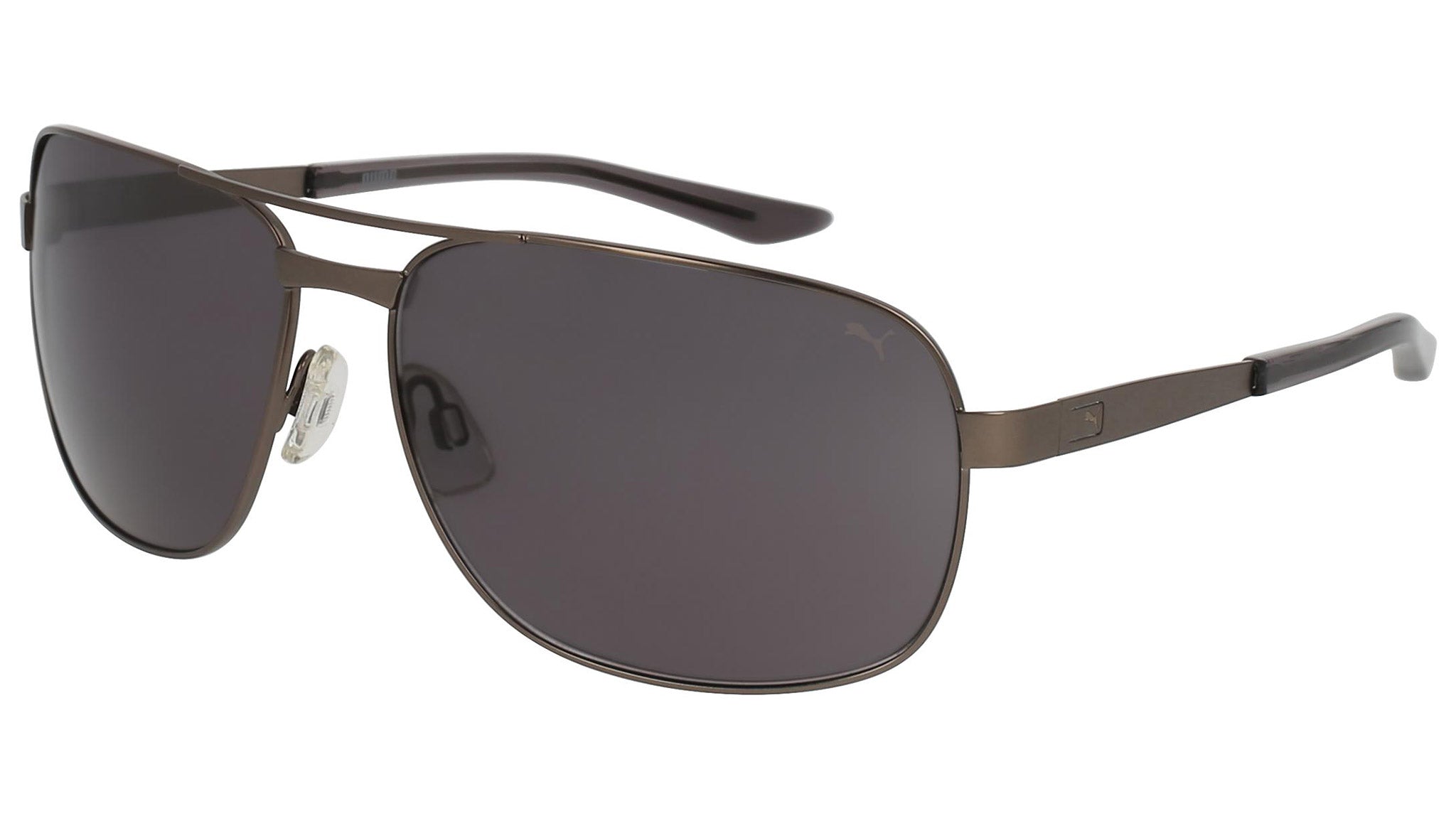 Puma Eyewear model PU0101S 005 matte ruthenium sunglasses, with grey lenses. Puma Eyewear merges performance and trends, innovation and fashion, sport and lifestyle, for those who see beyond trends and challenge the norm to move things forward.