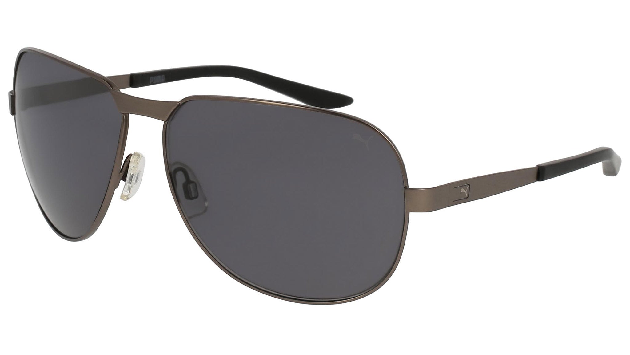 Puma Eyewear model PU0102S 001 matte dark ruthenium sunglasses, with grey lenses. Puma Eyewear merges performance and trends, innovation and fashion, sport and lifestyle, for those who see beyond trends and challenge the norm to move things forward.