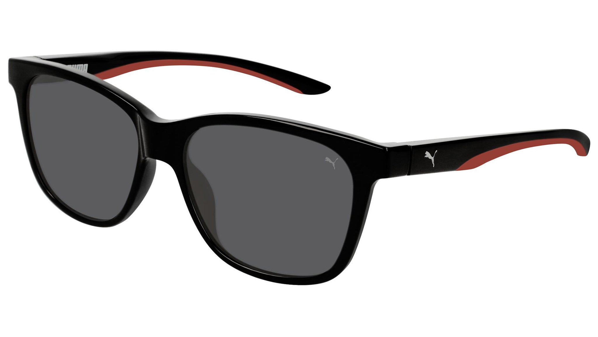 Puma Eyewear model PU0196S 002 black shiny sunglasses, with grey lenses. Puma Eyewear merges performance and trends, innovation and fashion, sport and lifestyle, for those who see beyond trends and challenge the norm to move things forward.