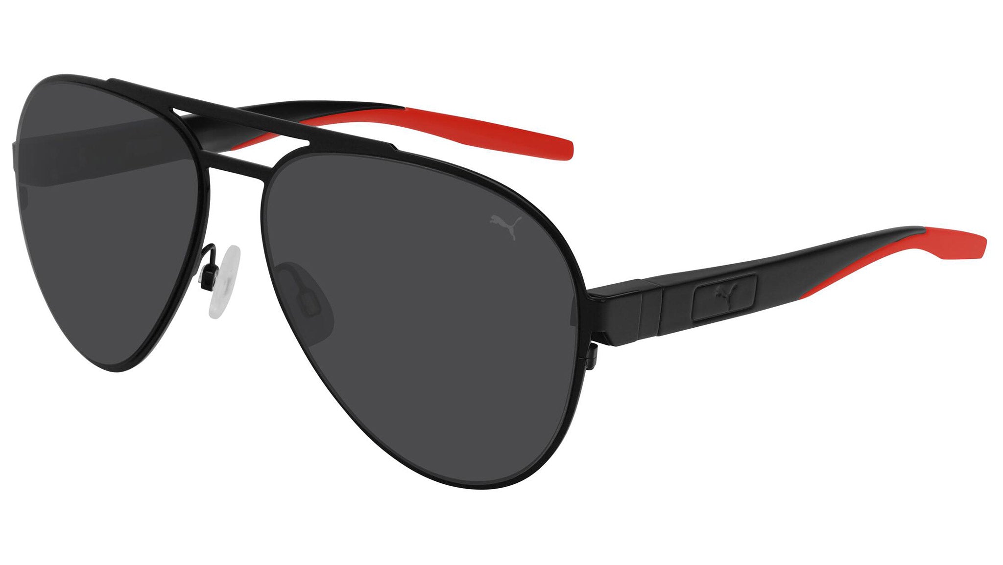 Puma Eyewear model PU0220S 004 shiny black sunglasses, with grey lenses. Puma Eyewear merges performance and trends, innovation and fashion, sport and lifestyle, for those who see beyond trends and challenge the norm to move things forward.