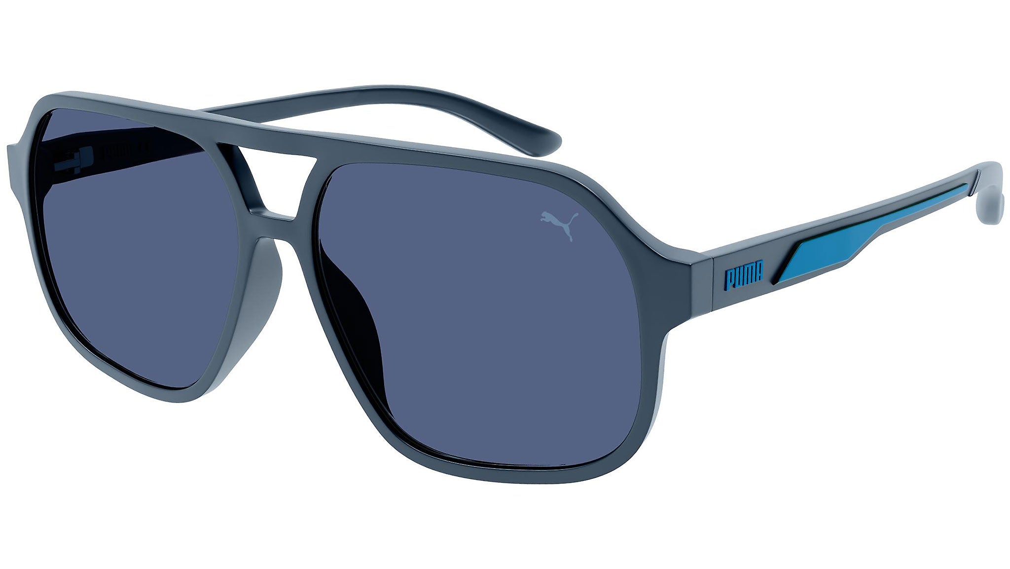Occhiali da sole Puma Sportstyle modello 0368S, variante colore 002 grigio scuro opaco tinta unita con lenti color blu tinta unita. Puma Eyewear incarna gli ideali di performance e di tendenza, innovazione e moda, sport e lifestyle, per coloro che vedono oltre le convenzioni e sfidano la normalità, per essere sempre un passo avanti.