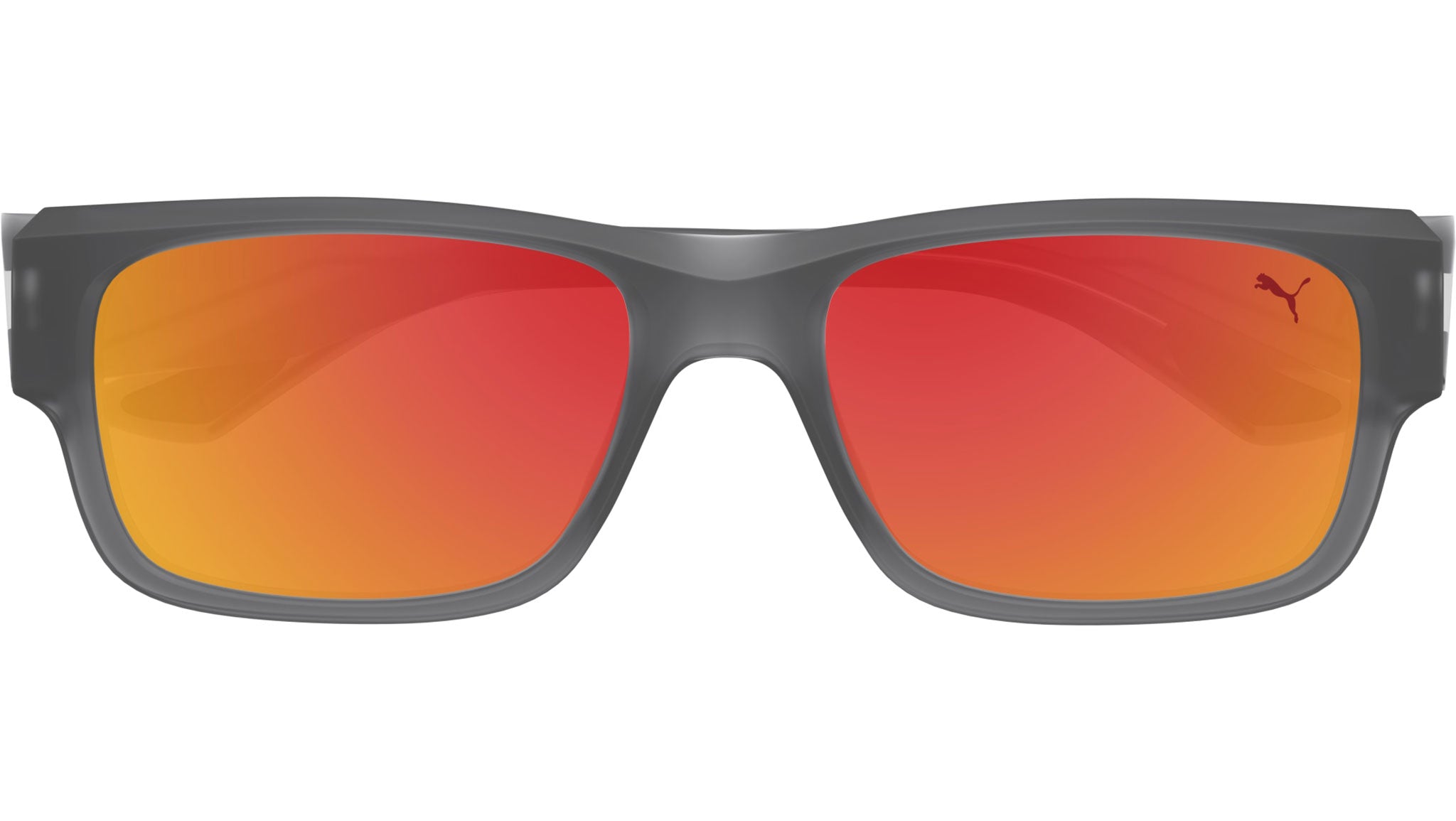 Occhiali da sole Puma Sport modello PU0438S variante colore 004 grigio scuro opaco trasparente con lenti color verde solido + rosso a specchio. Rivenditore autorizzato Puma online. Gli occhiali vengono consegnati con custodia e accessori originali e sono coperti dalla garanzia ufficiale di 12 mesi del produttore.