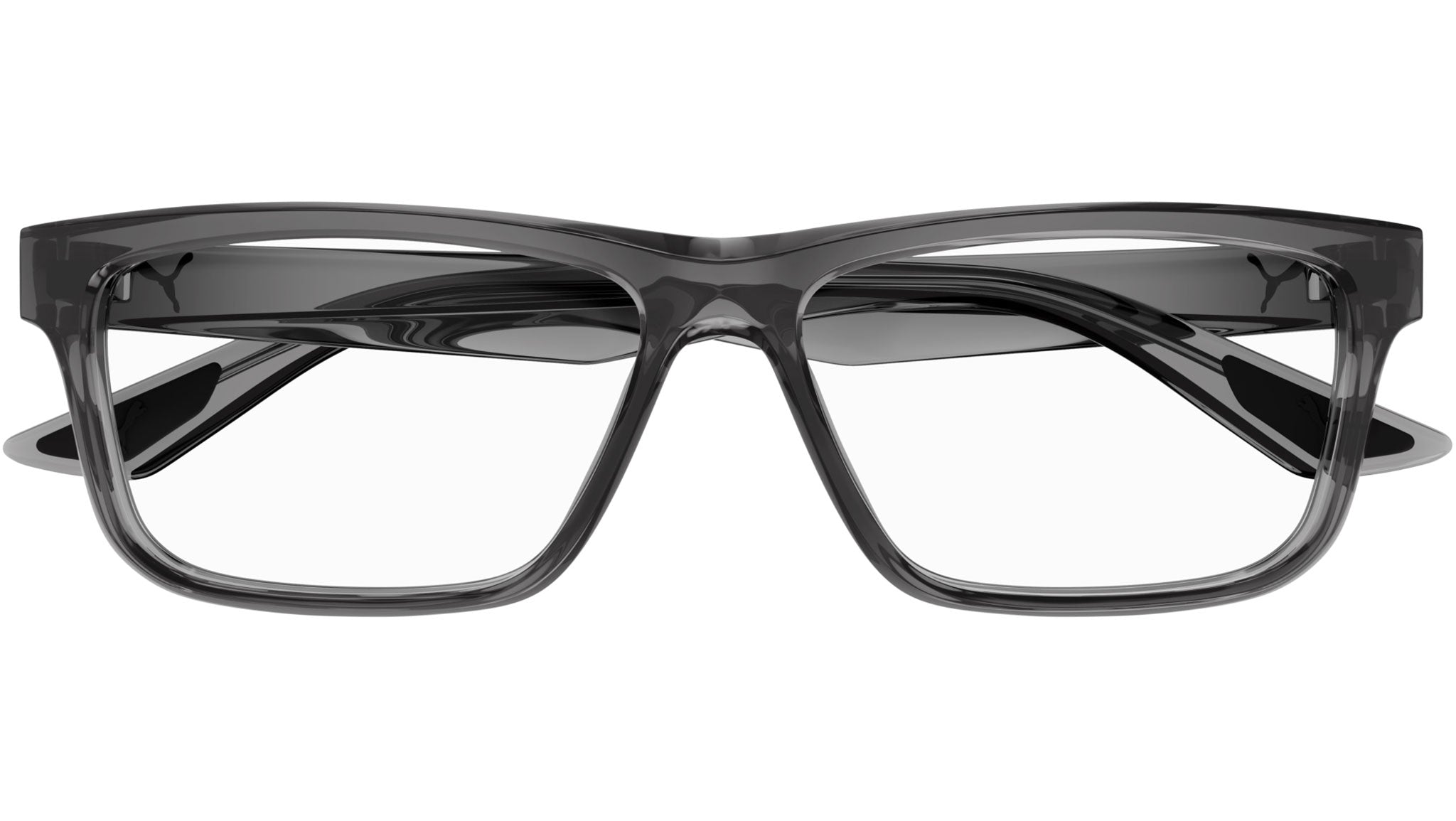 Occhiali da vista Puma Sport modello PU0444O variante colore 005 grigio scuro trasparente lucido con lenti demo. Rivenditore autorizzato Puma online. Gli occhiali vengono consegnati con custodia e accessori originali e sono coperti dalla garanzia ufficiale di 12 mesi del produttore.