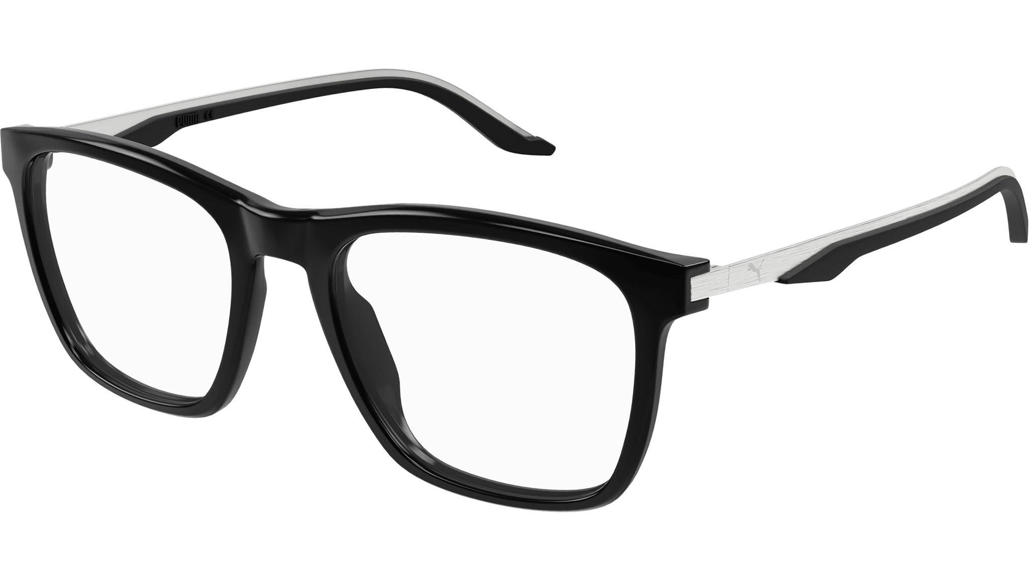Occhiali da vista Puma Tech modello PU0454O variante colore 001 nero lucido con lenti demo. Rivenditore autorizzato Puma online. Gli occhiali vengono consegnati con custodia e accessori originali e sono coperti dalla garanzia ufficiale di 12 mesi del produttore.