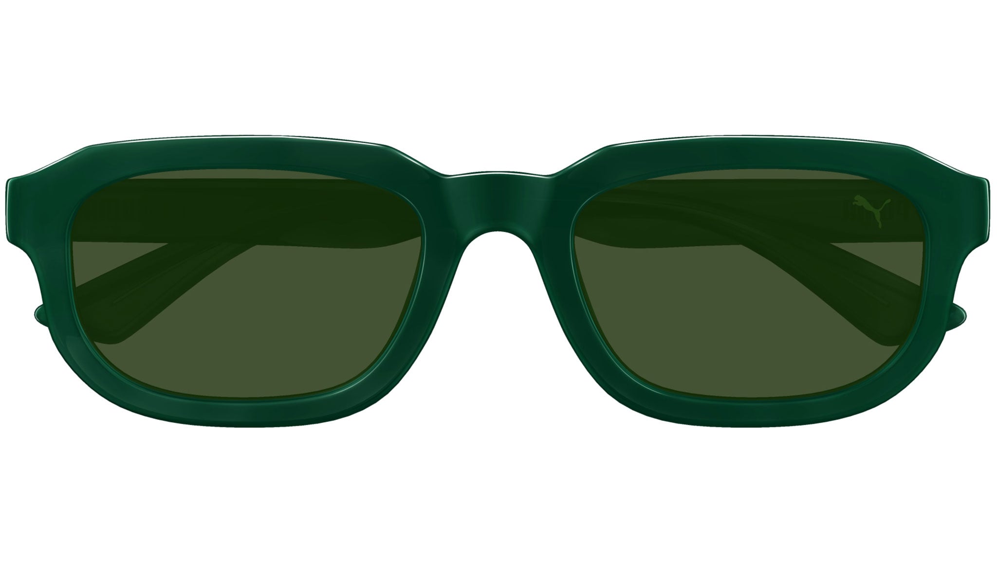 Occhiali da sole Puma Essential modello PU0463S variante colore 003 verde vite trasparente lucido con lenti color verde tinta unita. Rivenditore autorizzato Puma online. Gli occhiali vengono consegnati con custodia e accessori originali e sono coperti dalla garanzia ufficiale di 12 mesi del produttore.