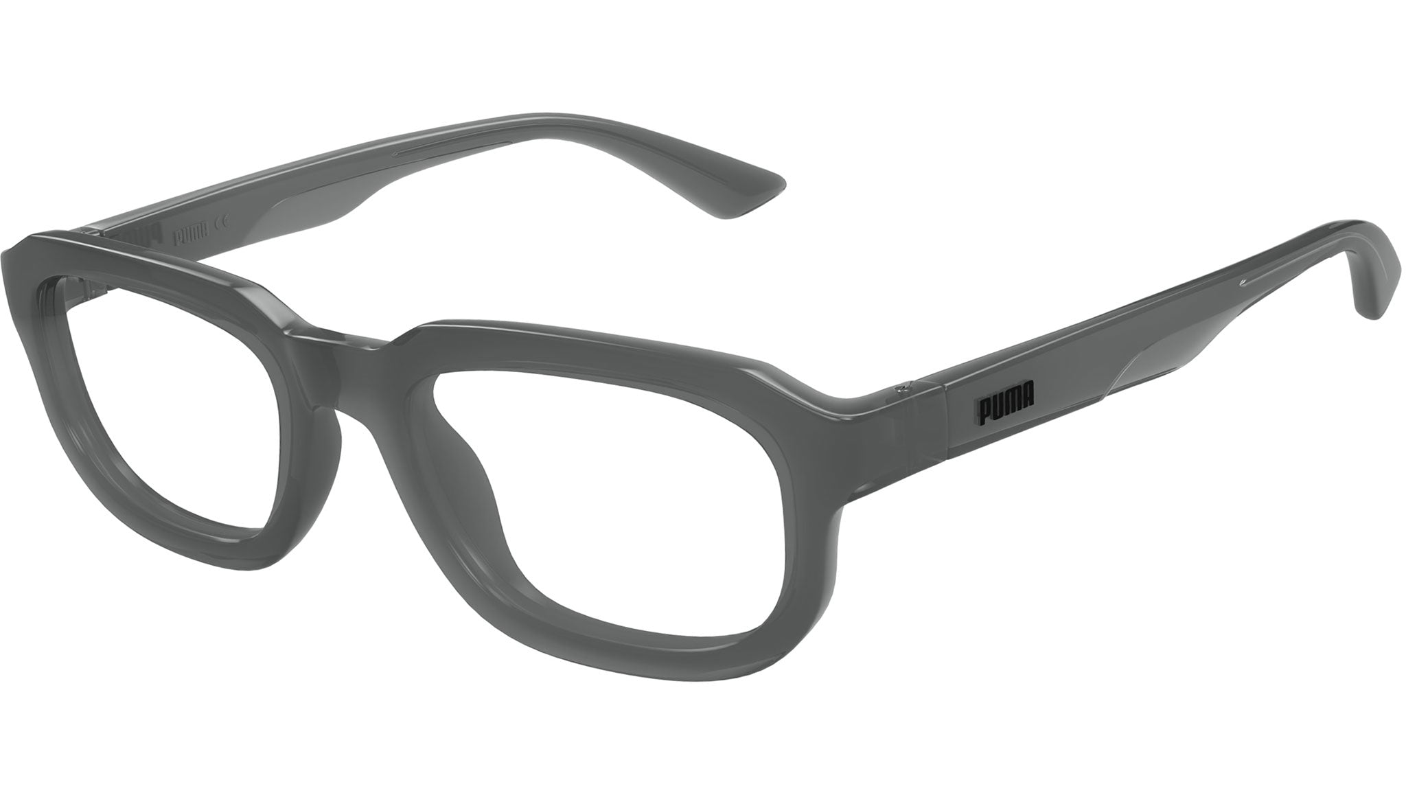 Occhiali da vista Puma Essential modello PU0466O variante colore 001 grigio cool trasparente lucido con lenti demo. Rivenditore autorizzato Puma online. Gli occhiali vengono consegnati con custodia e accessori originali e sono coperti dalla garanzia ufficiale di 12 mesi del produttore.