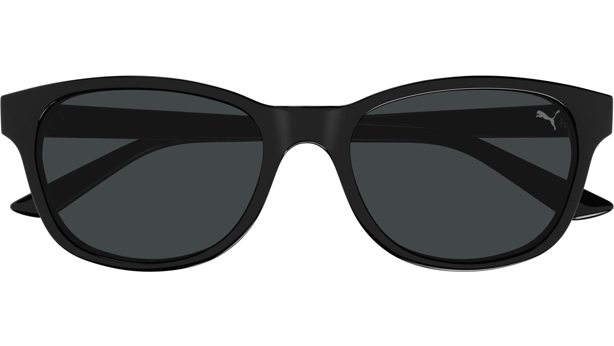 Occhiali da sole Puma Essential modello PU0468S variante colore 001 nero lucido con lenti color grigio fumo tinta unita. Rivenditore autorizzato Puma online. Gli occhiali vengono consegnati con custodia e accessori originali e sono coperti dalla garanzia ufficiale di 12 mesi del produttore.