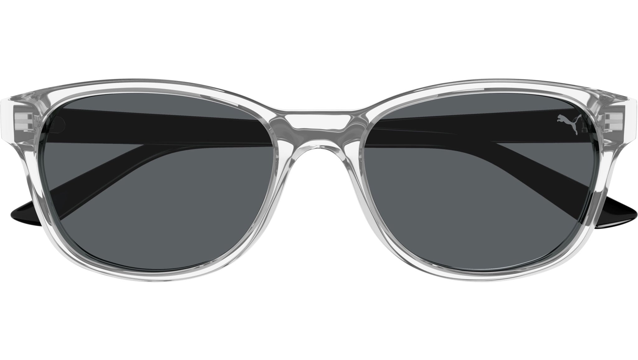 Occhiali da sole Puma Essential modello PU0468S variante colore 004 grigio chiaro trasparente lucido con lenti color grigio tinta unita. Rivenditore autorizzato Puma online. Gli occhiali vengono consegnati con custodia e accessori originali e sono coperti dalla garanzia ufficiale di 12 mesi del produttore.