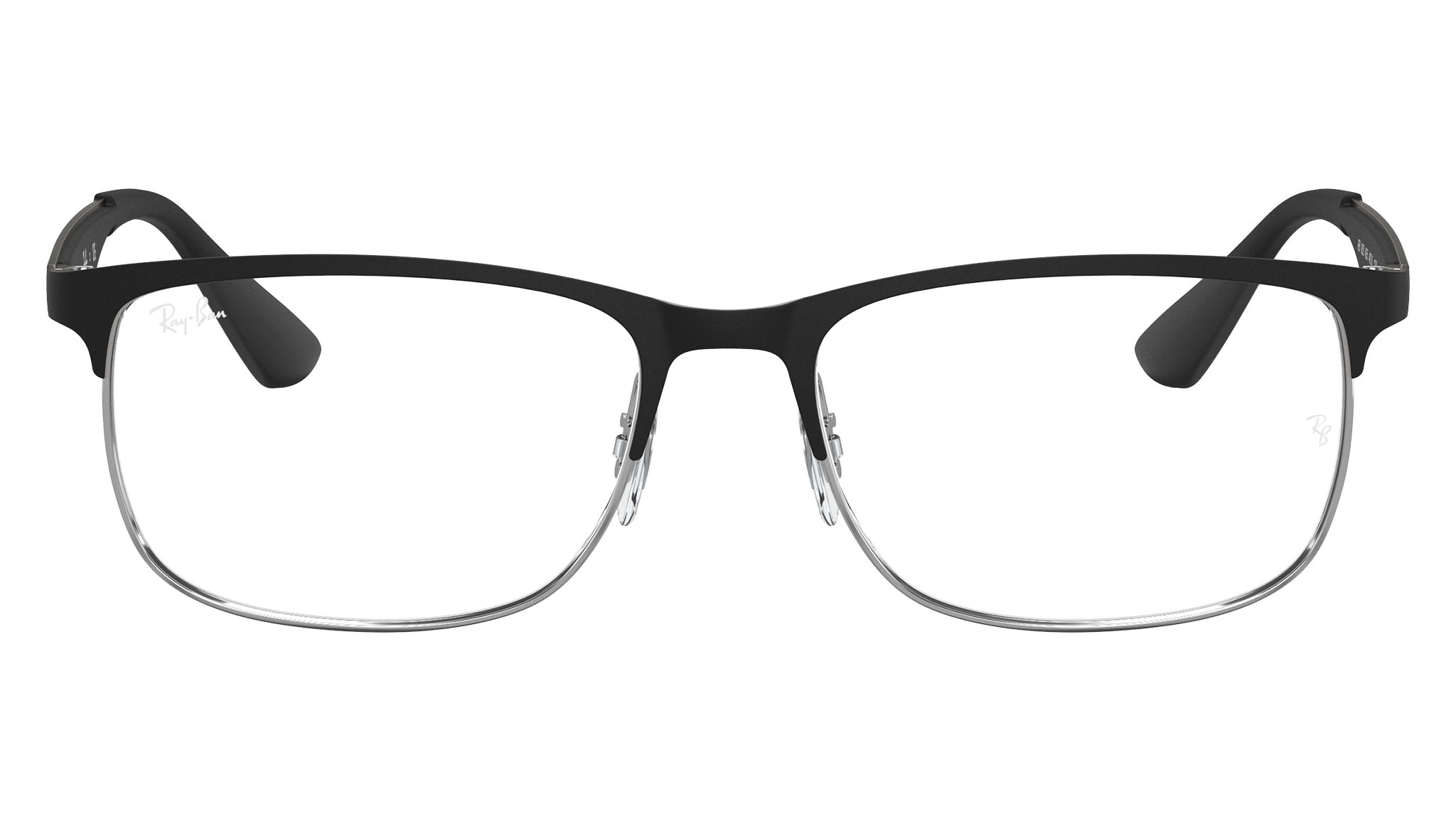 Occhiali da vista Ray-Ban Kids RY1052 color nero opaco su argento in metallo codice colore 4055. Forma unisex quadrata full rim con lenti demo. Con custodia originale e garanzia. Rivenditore autorizzato Ray-Ban.