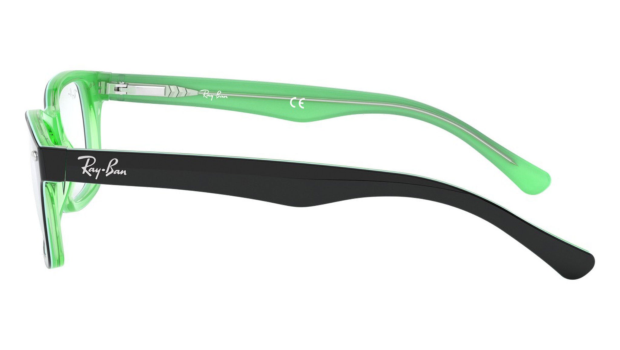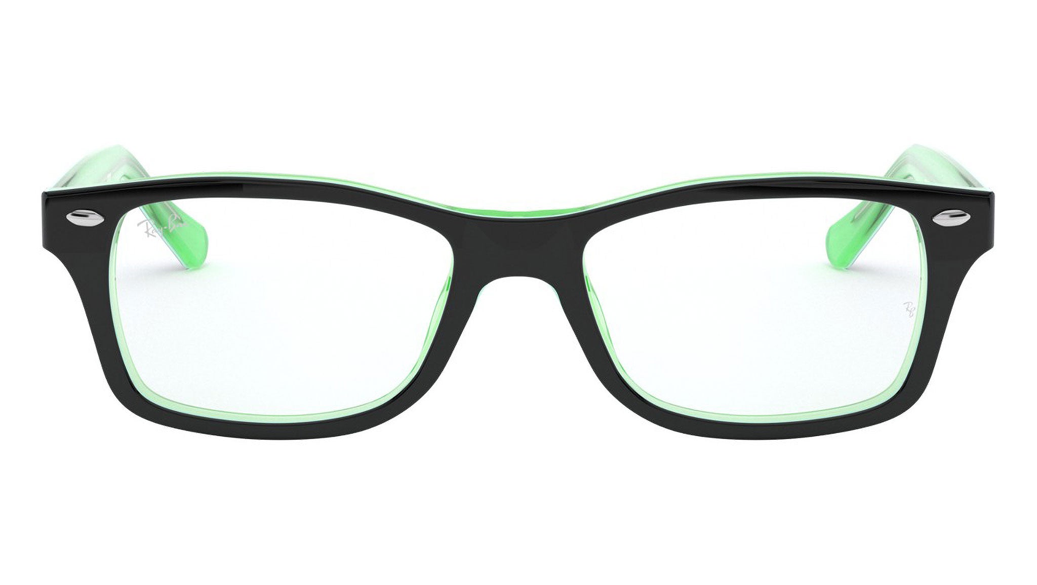 Occhiali da vista Ray-Ban Kids RY1531 color nero su verde trasparente in acetato codice colore 3764. Forma quadrata full rim con lenti demo. Con custodia originale e garanzia. Rivenditore autorizzato Ray-Ban.