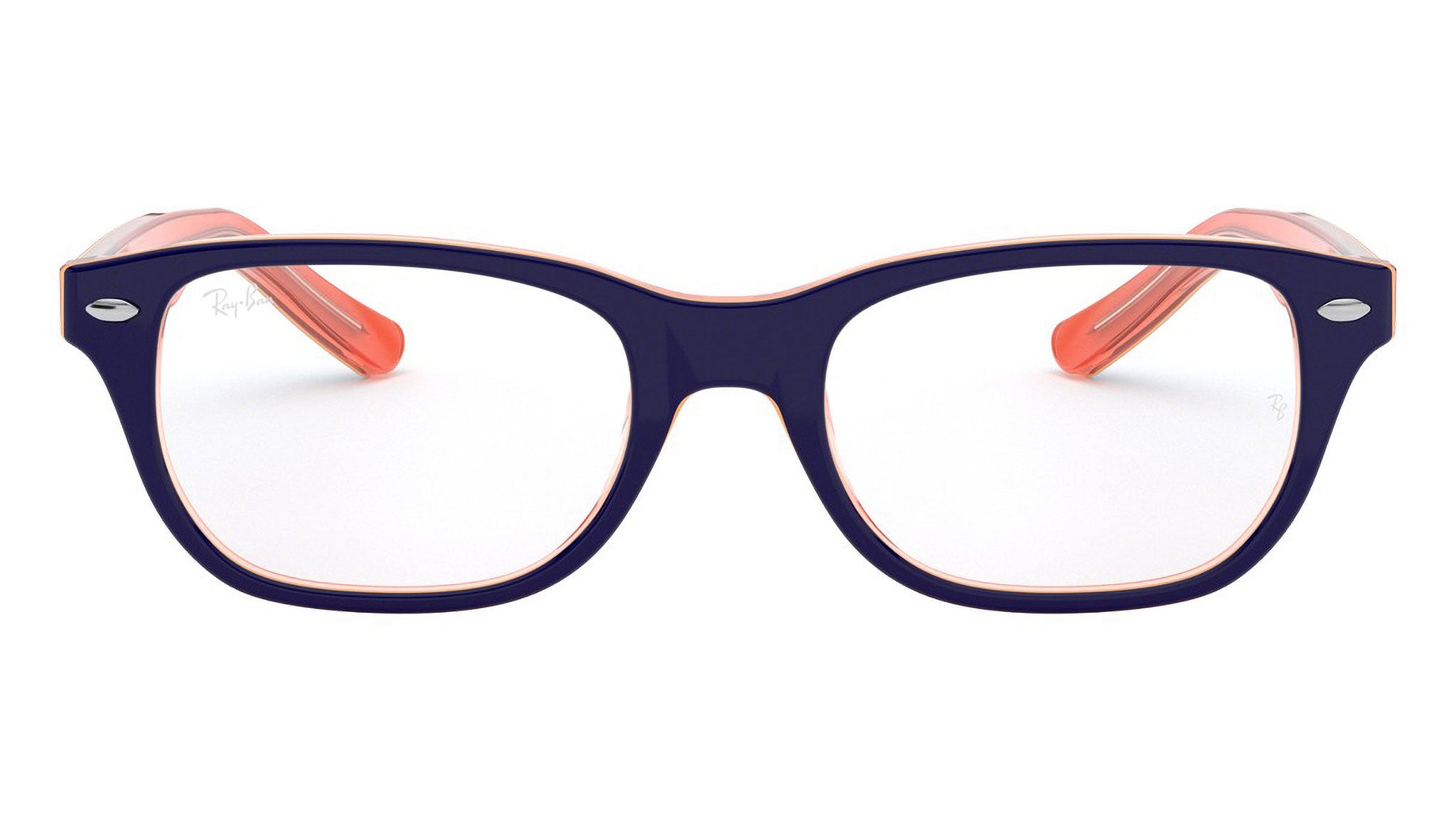 Occhiali da vista Ray-Ban Kids RY1555 color blu su arancia trasparente in acetato codice colore 3762. Forma quadrata full rim con lenti demo. Con custodia originale e garanzia. Rivenditore autorizzato Ray-Ban.