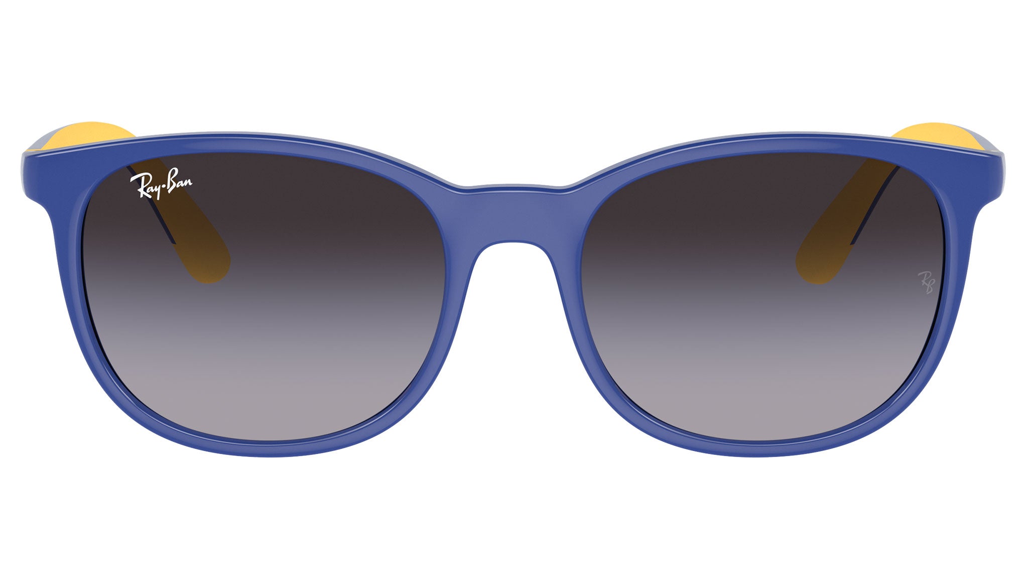 Occhiali da sole Ray-Ban Kids RJ9079S in iniettato codice colore 71328G azzurro su giallo. Forma quadrata unisex full rim con lenti viola. Con custodia originale e garanzia. Rivenditore autorizzato Ray-Ban.