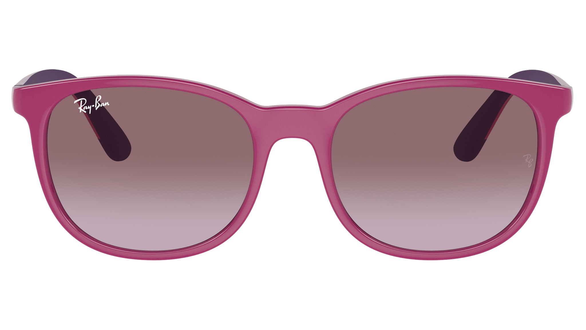 Occhiali da sole Ray-Ban Kids RJ9079S in iniettato codice colore 71498H fucsia su viola. Forma quadrata unisex full rim con lenti viola. Con custodia originale e garanzia. Rivenditore autorizzato Ray-Ban.