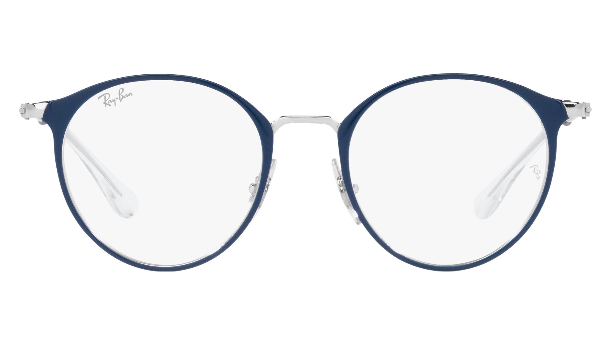 Occhiali da vista Ray-Ban Kids RY1053 color blu su argento in metallo codice colore 4085. Forma unisex panto full rim con lenti demo. Con custodia originale e garanzia. Rivenditore autorizzato Ray-Ban.