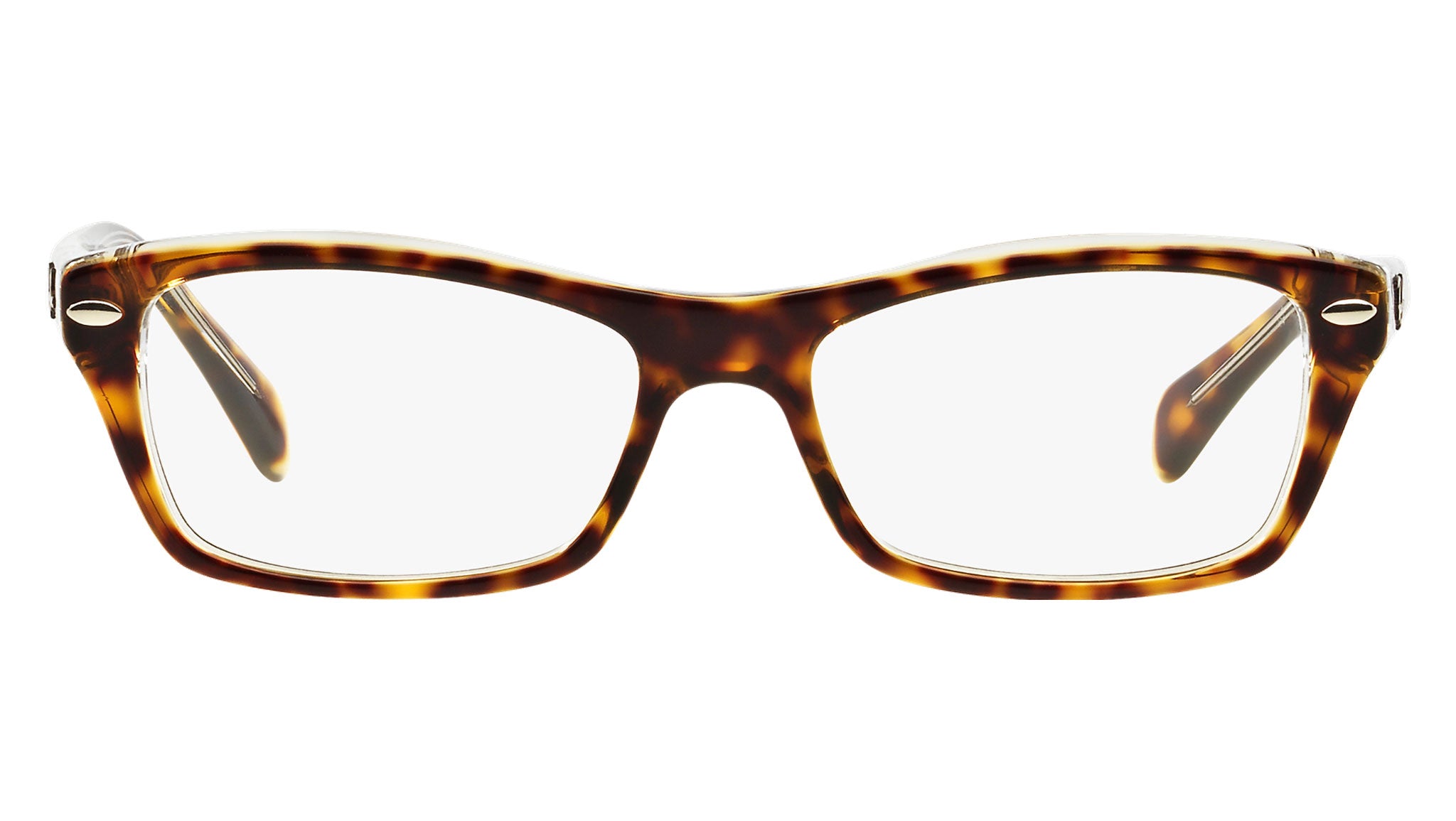 Occhiali da vista Ray-Ban Kids RY1550 color avana scuro lucido su trasparente in acetato codice colore 3602. Forma farfalla full rim con lenti demo. Con custodia originale e garanzia. Rivenditore autorizzato Ray-Ban.