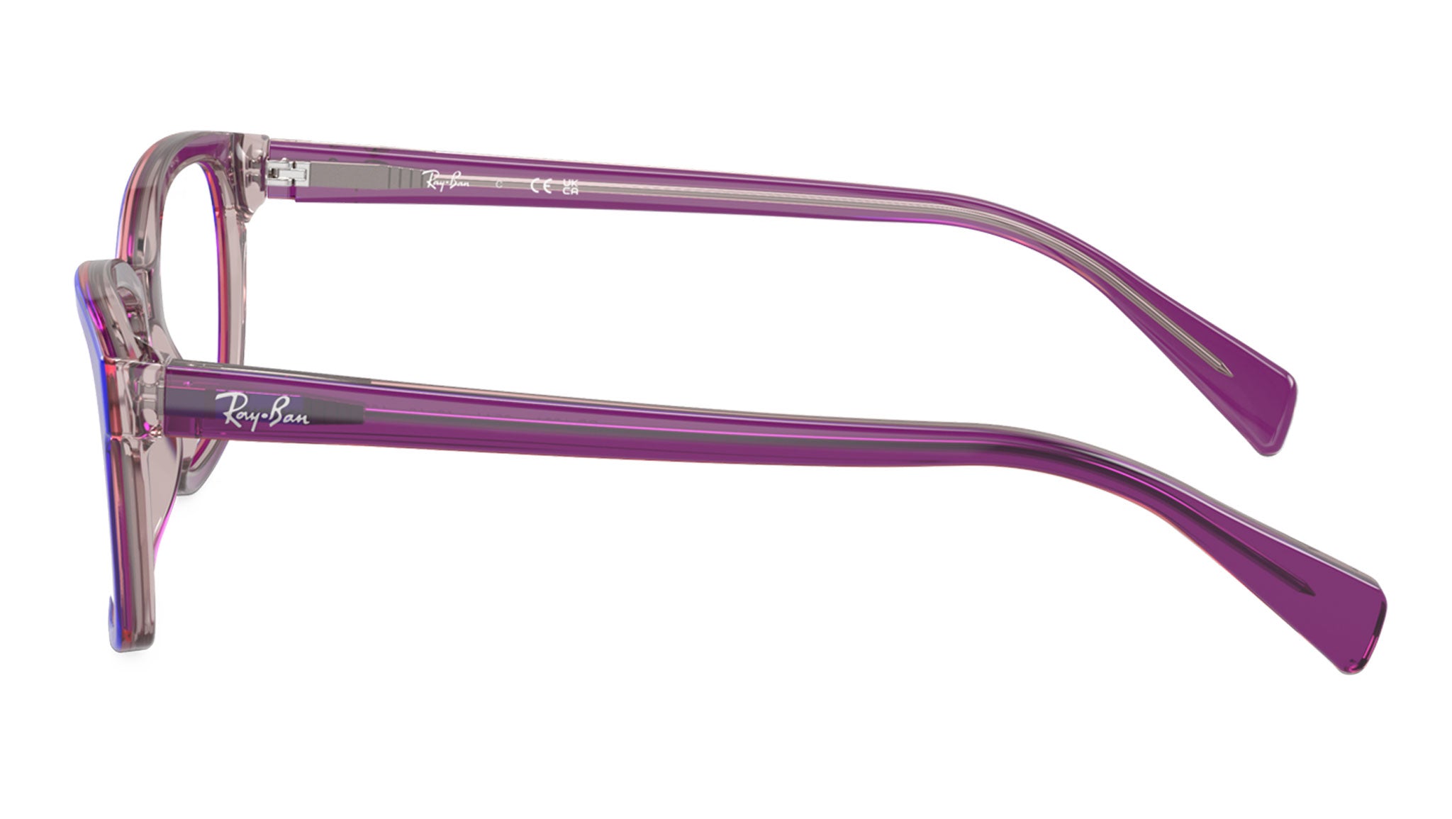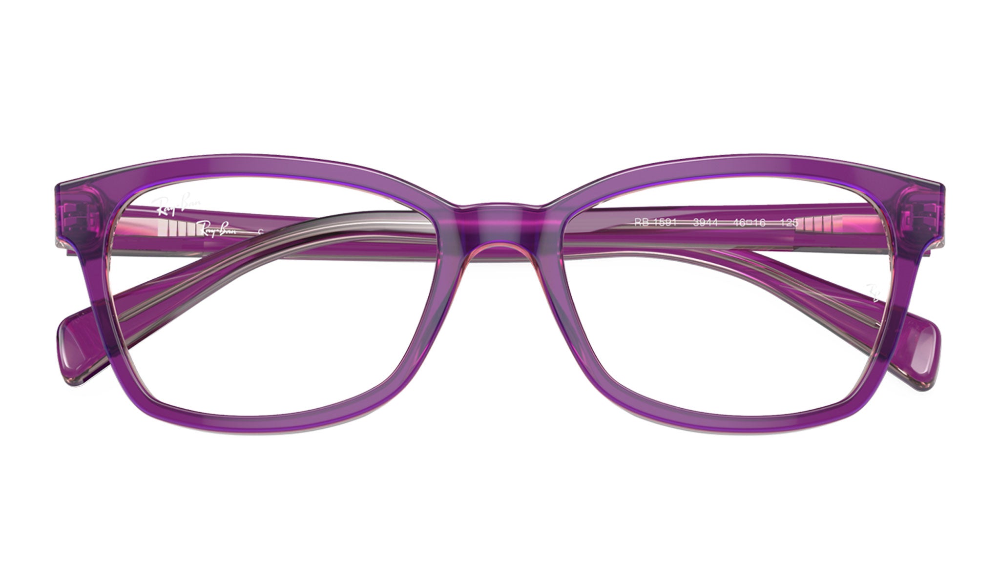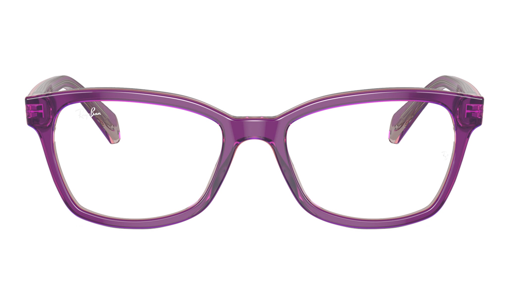 Occhiali da vista Ray-Ban Kids RY1591 color top viola / rosa / beige in acetato codice colore 3944. Forma femminile quadrata full rim con lenti demo. Con custodia originale e garanzia. Rivenditore autorizzato Ray-Ban.