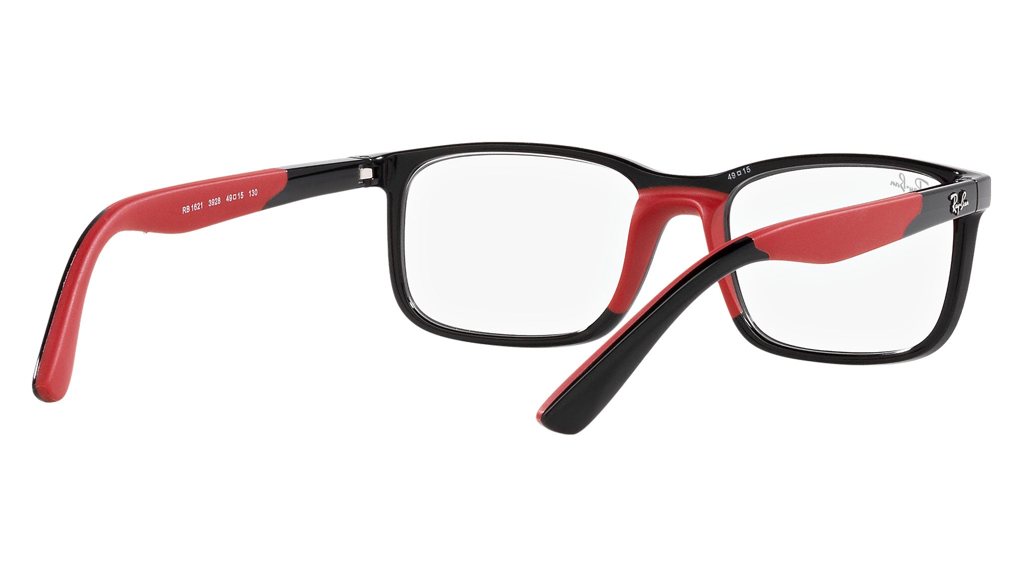 Occhiali da vista Ray-Ban Kids RY1621 color nero su rosso in iniettato codice colore 3928. Forma unisex rettangolare full rim con lenti demo. Con custodia originale e garanzia. Rivenditore autorizzato Ray-Ban.