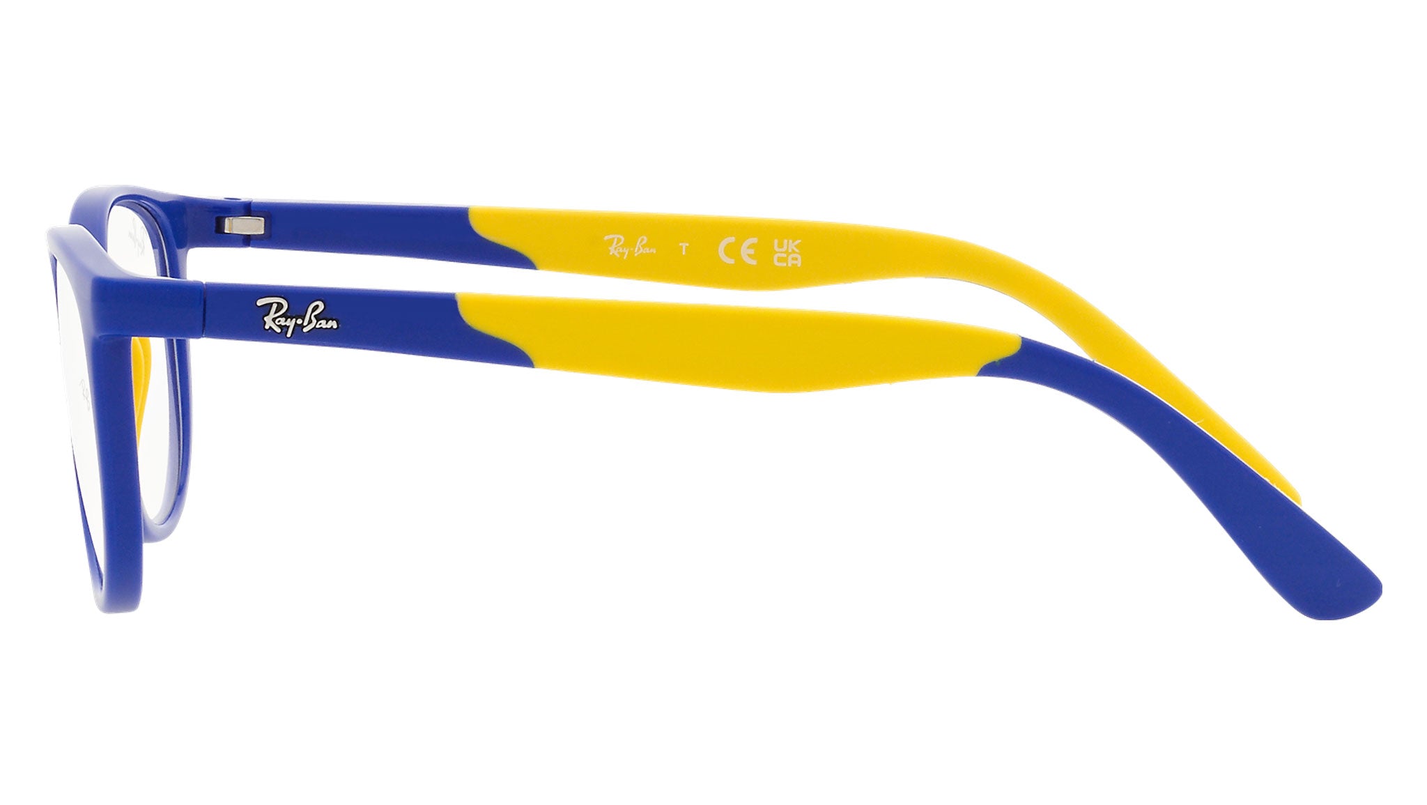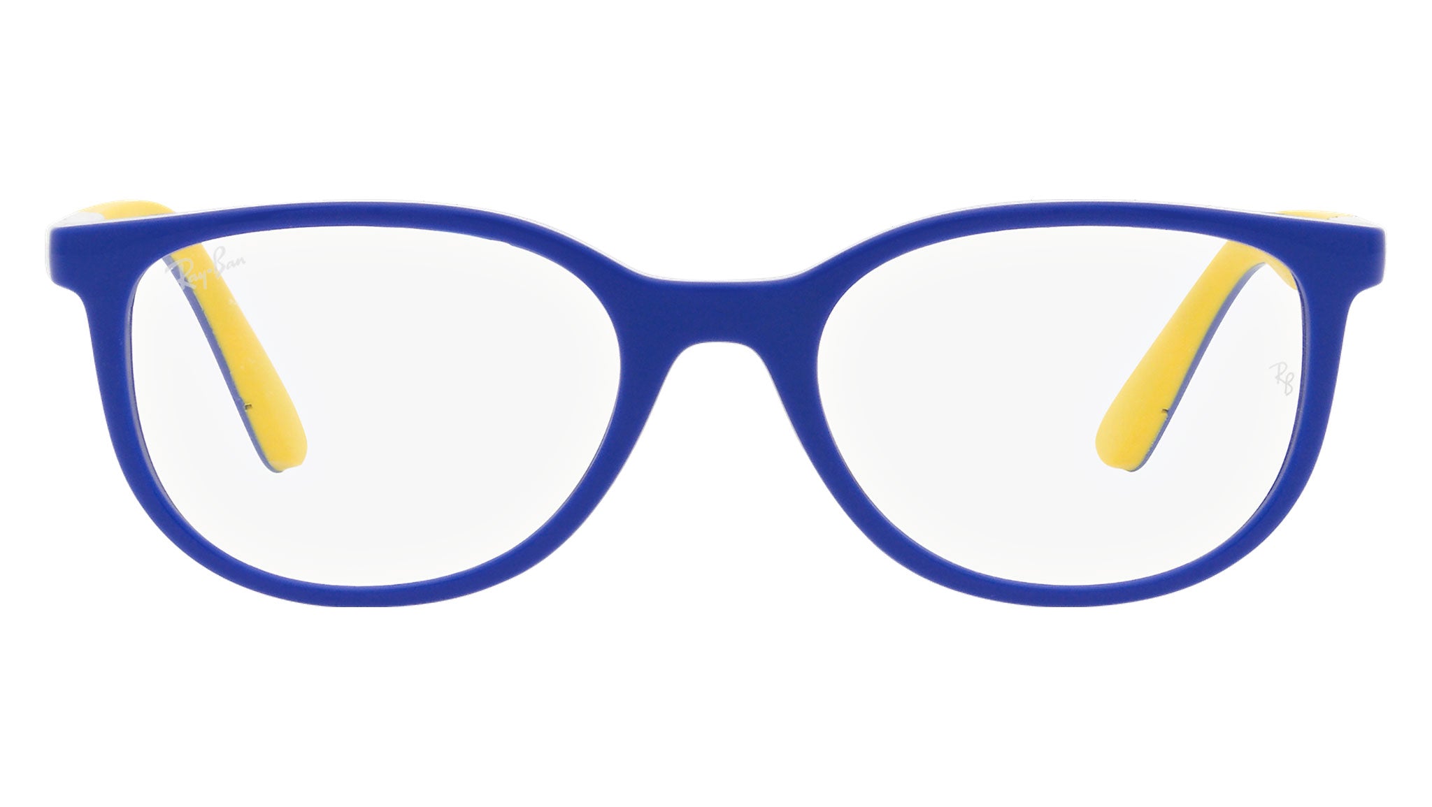 Occhiali da vista Ray-Ban Kids RY1622 color blu su giallo in iniettato codice colore 3929. Forma unisex d-frame full rim con lenti demo. Con custodia originale e garanzia. Rivenditore autorizzato Ray-Ban.