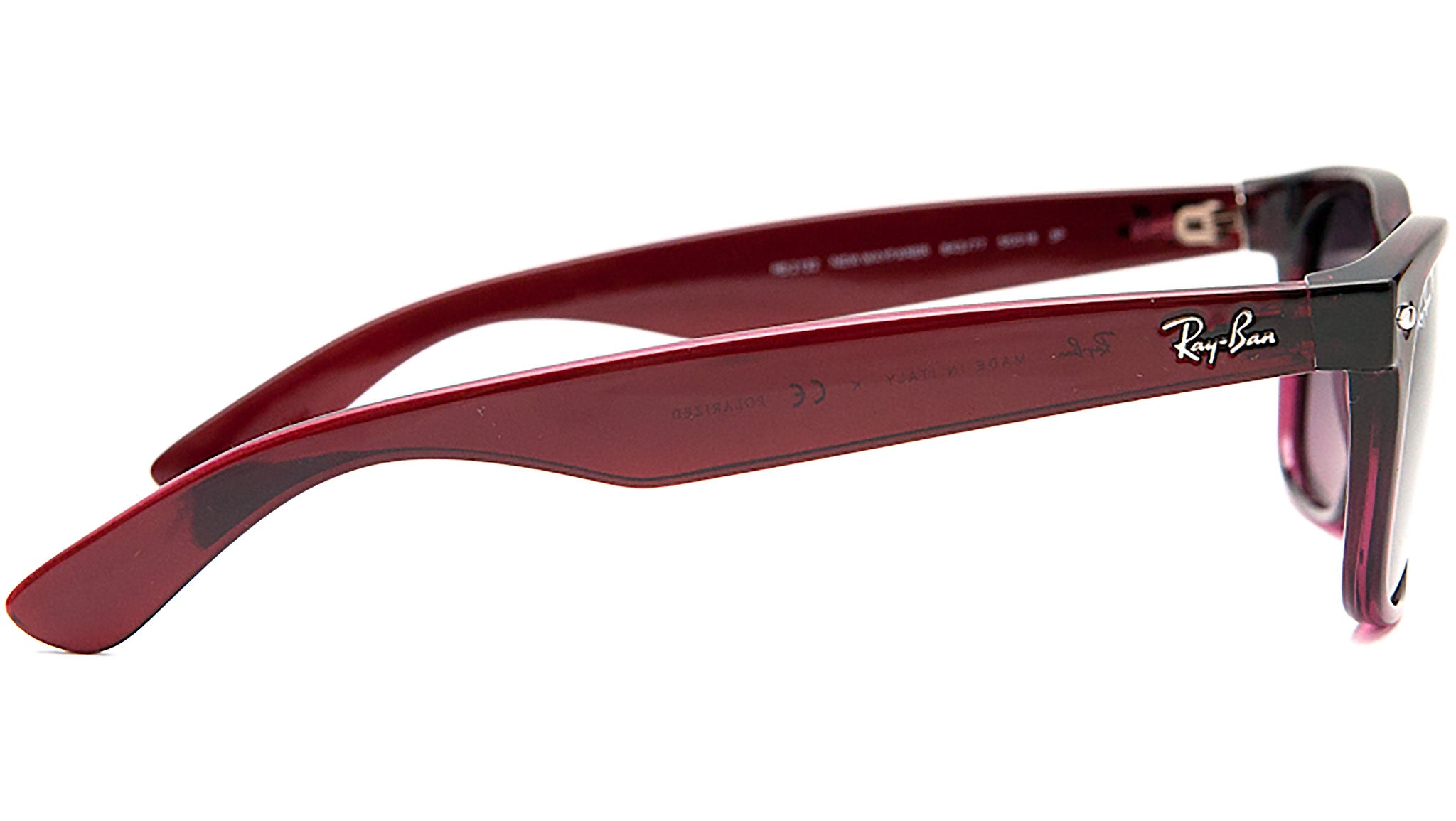 Occhiali da sole Ray-Ban New Wayfarer modello RB2132 codice colore 843/77 con montatura color rosso in nylon e lenti color viola sfumato blu. Ray-Ban rappresenta lo stile senza tempo, la semplicità e la libertà di espressione. Come brand di occhiali leader da generazioni, Ray-Ban è all'avanguardia dei cambiamenti culturali e simboleggia l'individualità e la personalità dei tempi. Dal suo debutto, con l'iconico Aviator, creato originariamente per i piloti dell'aviazione degli Stati Uniti, Ray-Ban è stato indossato da celebrità e personaggi pubblici in tutto il mondo, diventando un simbolo di stile e raffinatezza.