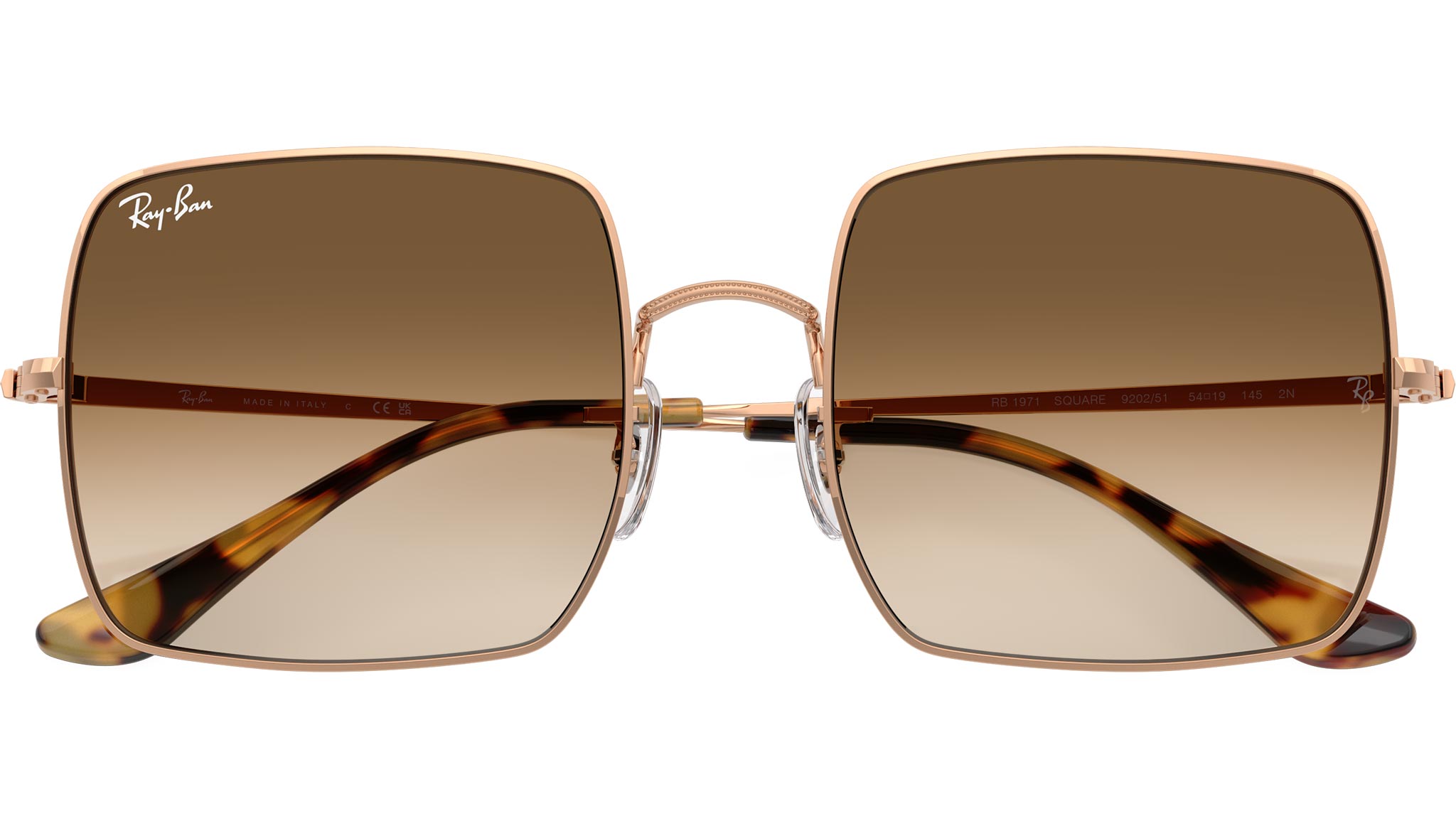 Occhiali da sole Ray-Ban Square modello RB1971 codice colore 920251 con montatura in metallo color oro rosa e lenti in cristallo color marrone chiaro sfumato. Ray-Ban rappresenta lo stile senza tempo, la semplicità e la libertà di espressione. Leader da generazioni, Ray-Ban è all'avanguardia dei cambiamenti culturali e simboleggia l'individualità e la personalità dei tempi. Ray-Ban è stato indossato da celebrità e personaggi pubblici in tutto il mondo, diventando un simbolo di stile e raffinatezza.