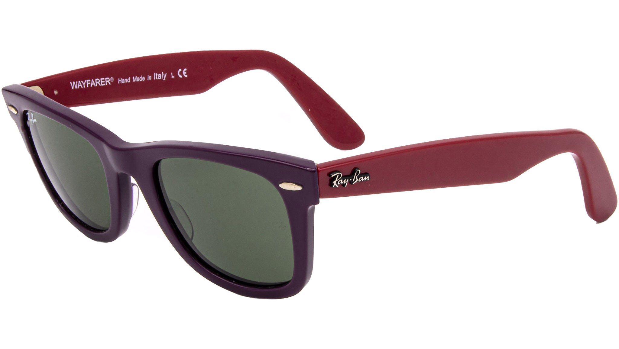 Occhiali da sole Ray-Ban Wayfarer modello RB2140 codice colore 966 con montatura color rosa / viola in acetate e lenti color verde. Ray-Ban rappresenta lo stile senza tempo, la semplicità e la libertà di espressione. Come brand di occhiali leader da generazioni, Ray-Ban è all'avanguardia dei cambiamenti culturali e simboleggia l'individualità e la personalità dei tempi. Dal suo debutto, con l'iconico Aviator, creato originariamente per i piloti dell'aviazione degli Stati Uniti, Ray-Ban è stato indossato da celebrità e personaggi pubblici in tutto il mondo, diventando un simbolo di stile e raffinatezza.