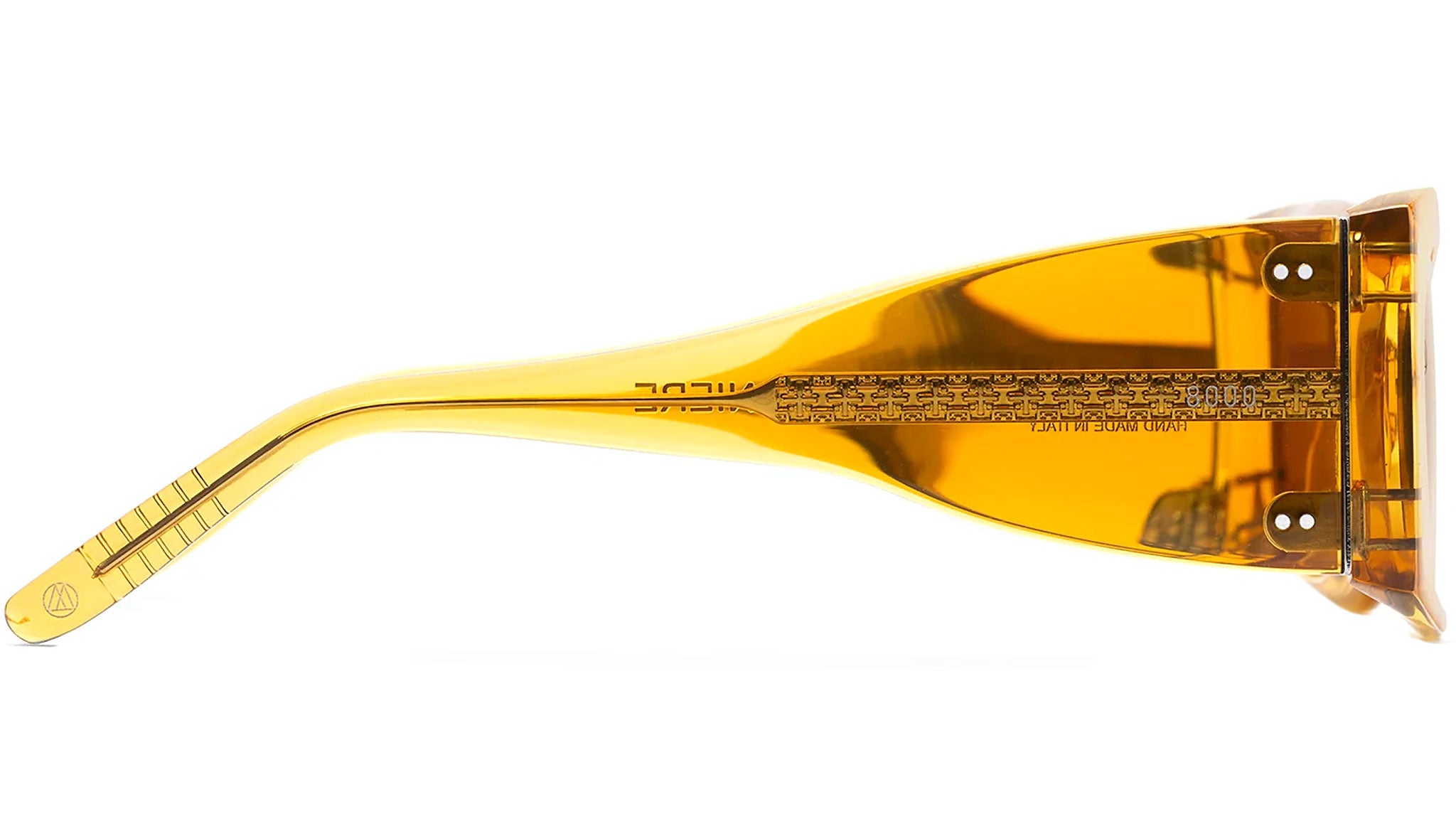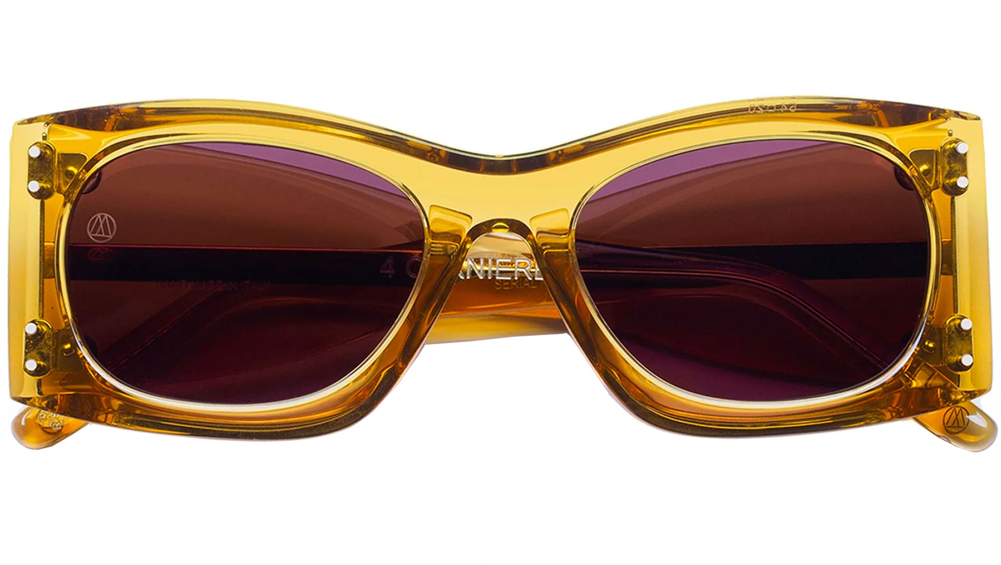 Created for the exclusive Italian-American brand Ottomila, 4 Cerniere is a cutting-edge piece of eyewear that elevates timeless simplicity to iconic contemporary style. 4 Cerniere means 4 hinges in Italian, this unique feature strengthens the structure and allows perfect alignment between the temples and the front of the glasses. The model features wide, squared lenses and chunky acetate rims with geometric temple tips, conceived as a crossover between 1950s glamour and daring masculinity. The model’s sturdy construction has been carved on the inside of the frame, resulting in a high-end piece. This version comes with Bordeaux lenses and light amber acetate. This translucent effect highlights the personalized metal core with Frank Lloyd Wright pattern decoration in the temples.