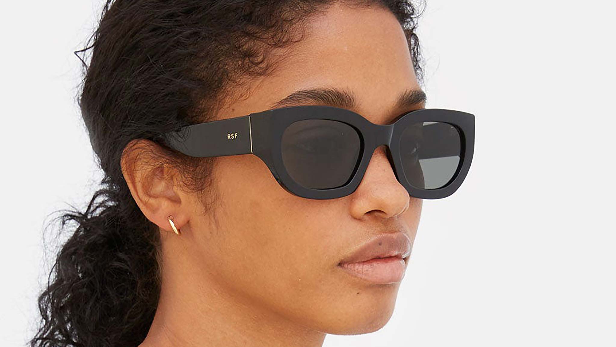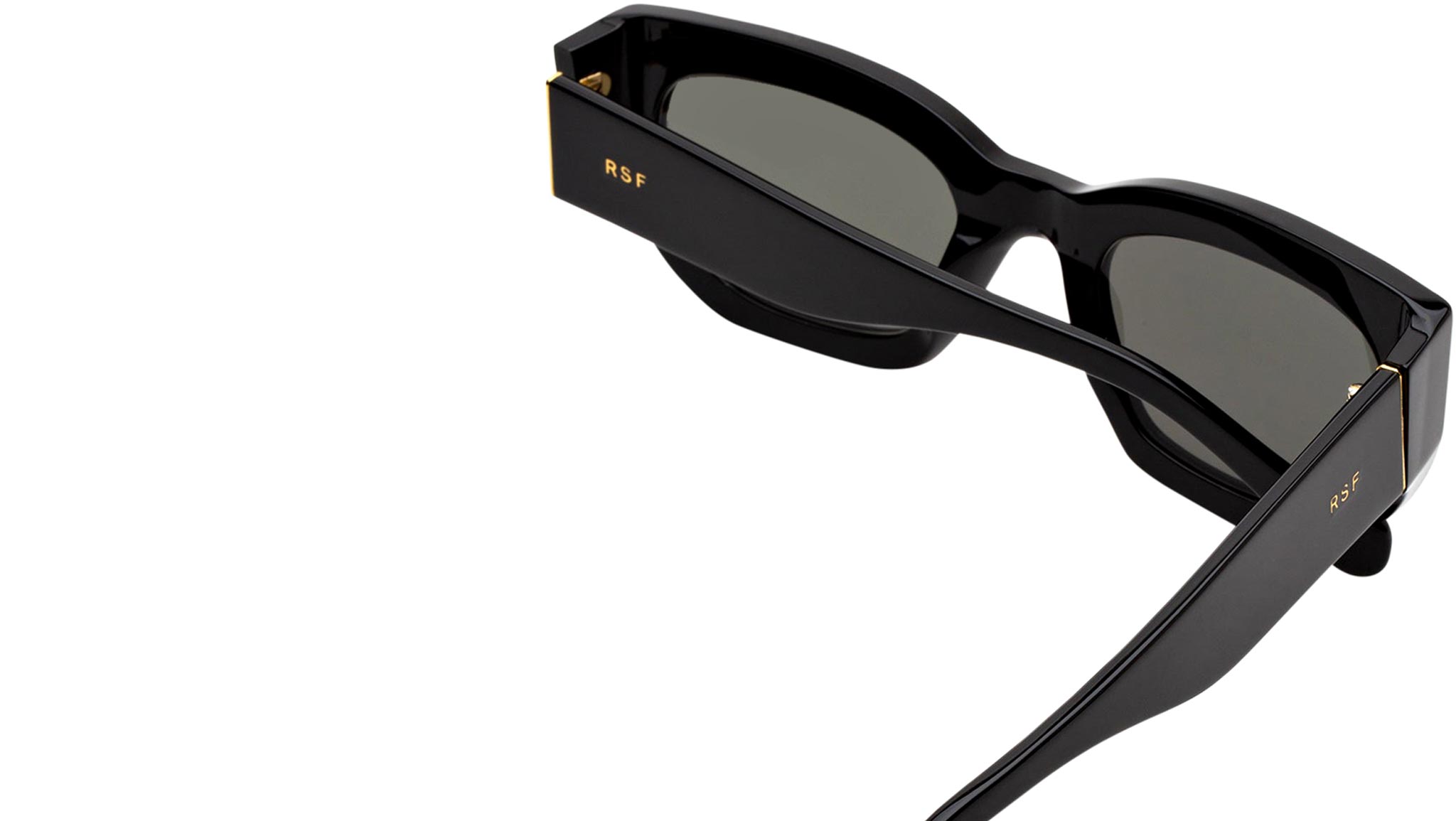 Eyewear design that transcends seasonal trends, capturing that sharp, timeless elegance with RSF’s thick acetate rims and a playful flair. Alva crosses over from the sunny Riviera to the busy streets of our cities. Day and night. Its angular temples and fresh design balances the rounded appeal of its broad lenses. This version comes in shiny black acetate with matching lenses.