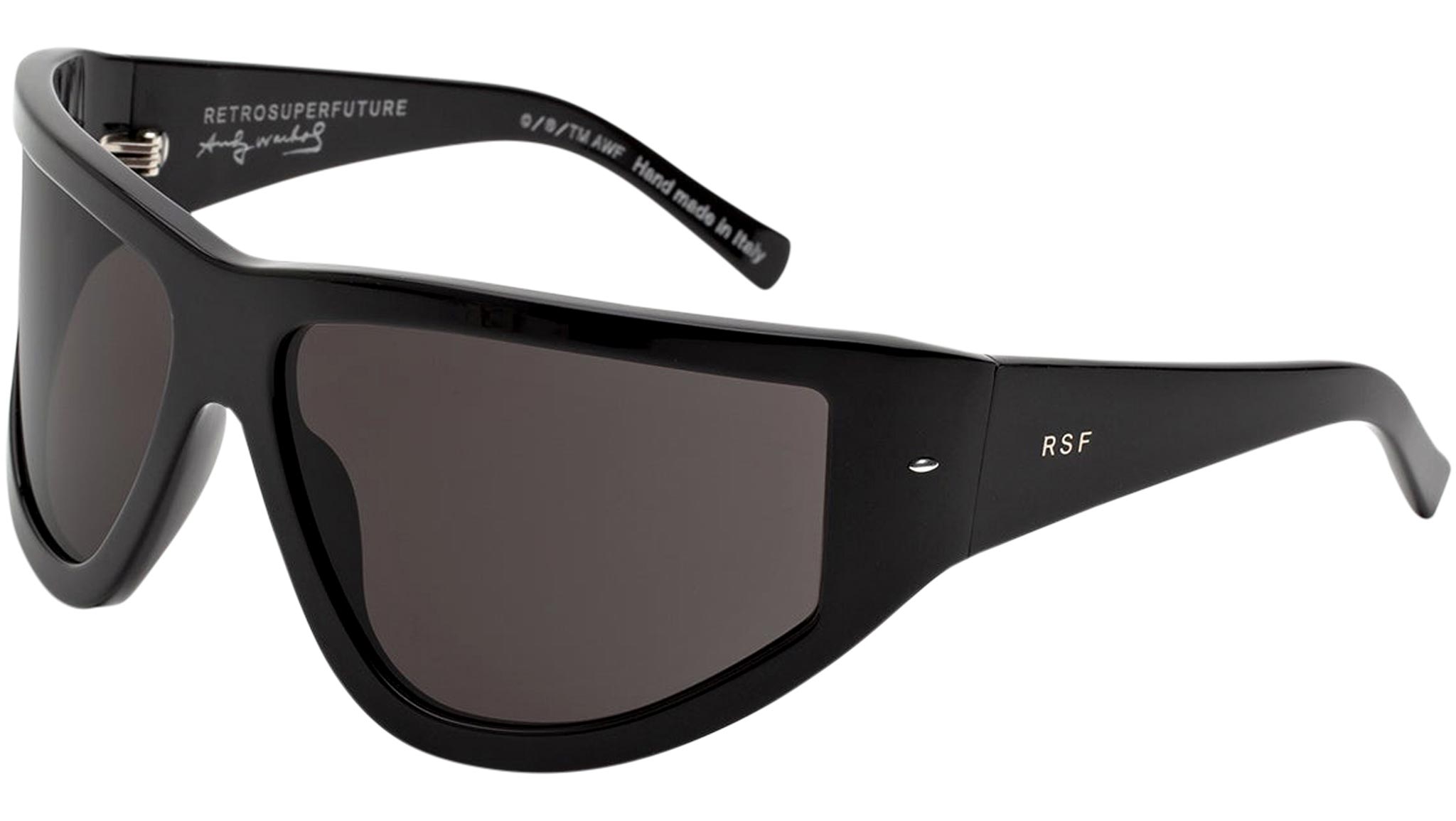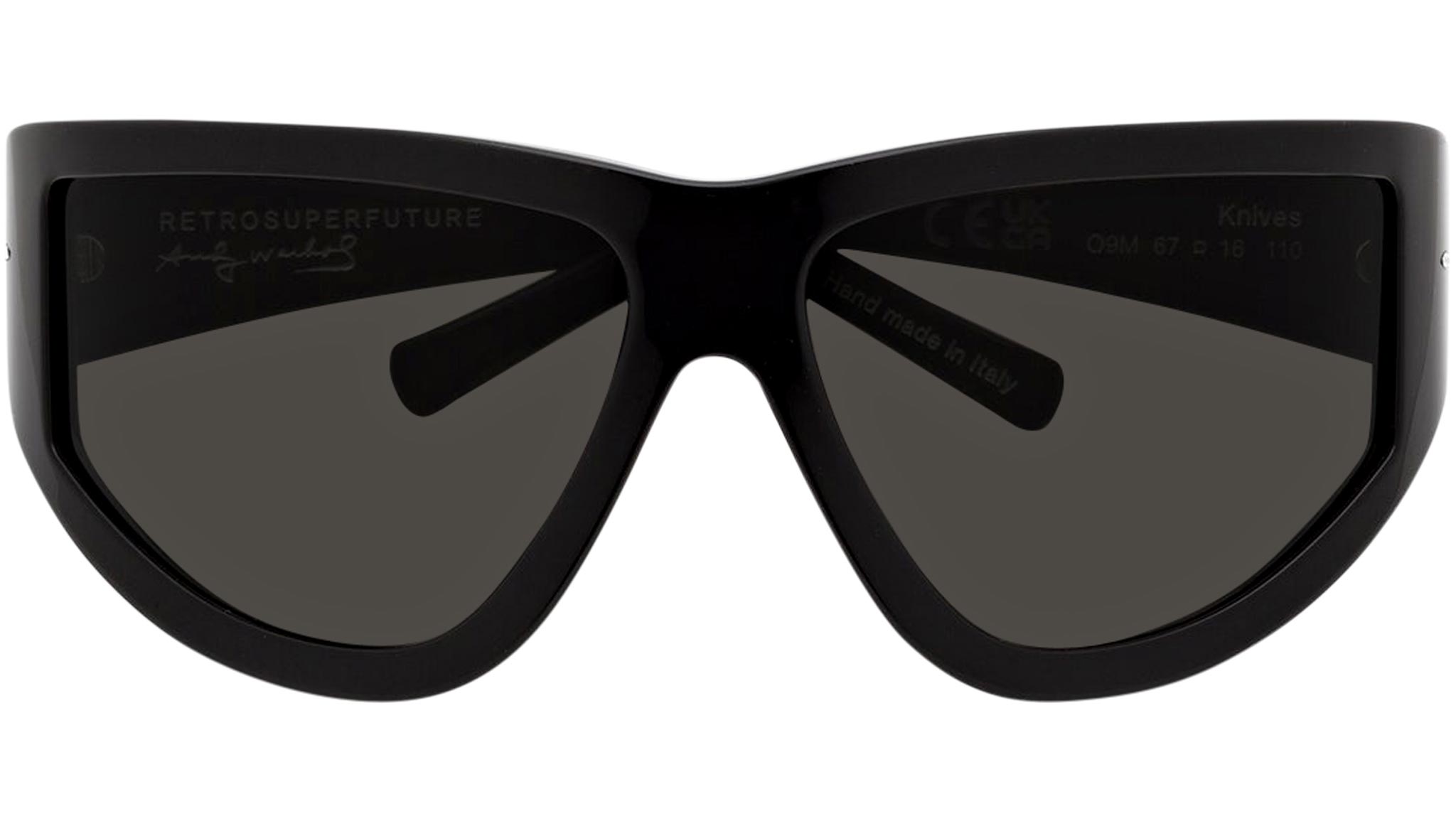 Retrosuperfuture sunglasses model Andy Warhol Knives Black. Sizes: R Lens Width: 67 mm. Frame Front: Frame Side: 110 mm. Product Code Size R: O9M