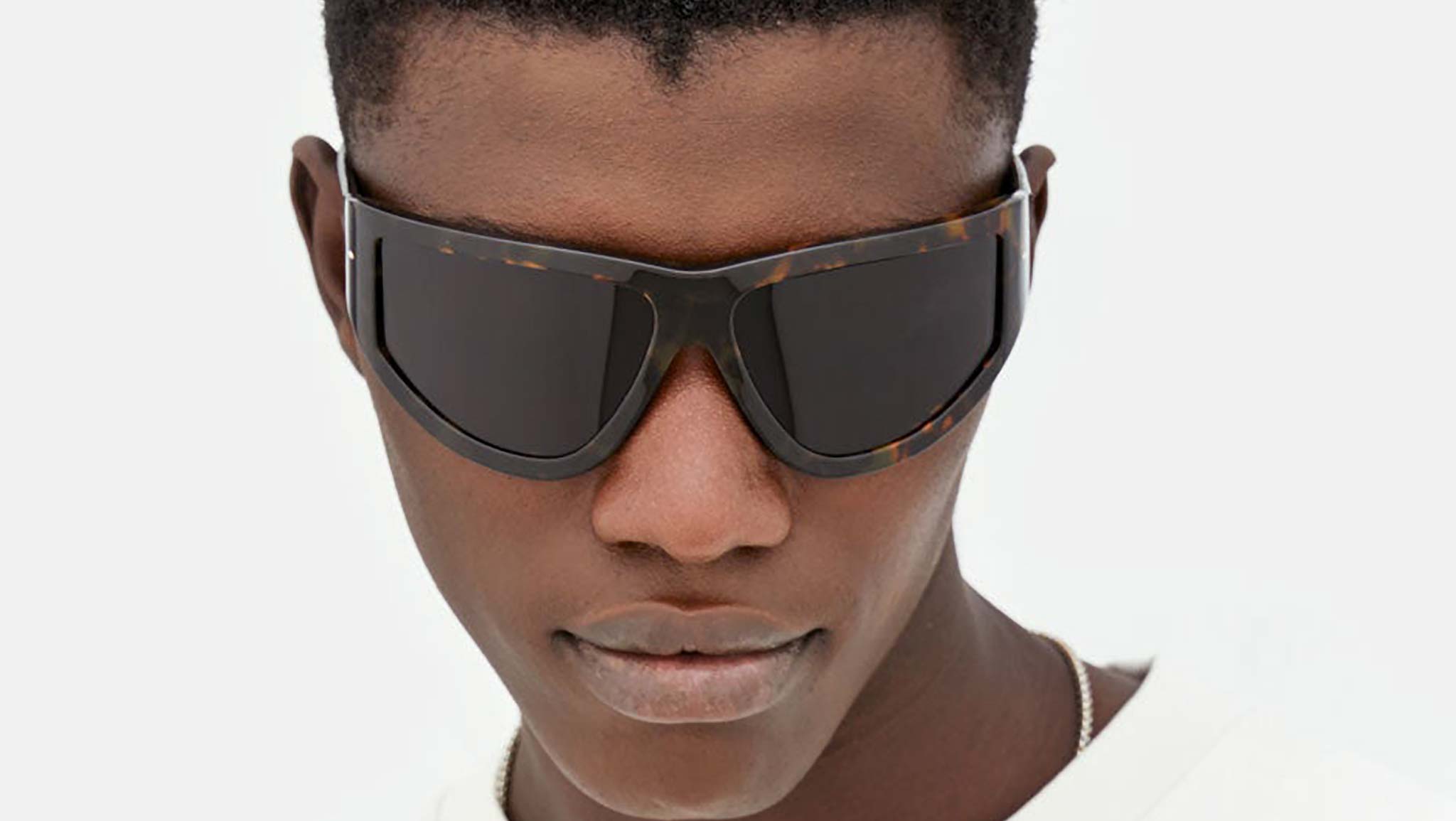 A crossover between a cat-eye and aviator sunglasses, Knives is a stand-out oversized shape. Crafted from exceptional acetate, this thick frame features an angular top with curved lenses on the bottom half of the frame. A V-shaped brow and curved temples mark this playful, exuberant silhouette designed for both winter and summer months. This version comes in a rich Havana acetate with smoky black lenses. Sizes: R Lens Width: 67 mm. Frame Front: Frame Side: 110 mm. Product Code Size R: CS7