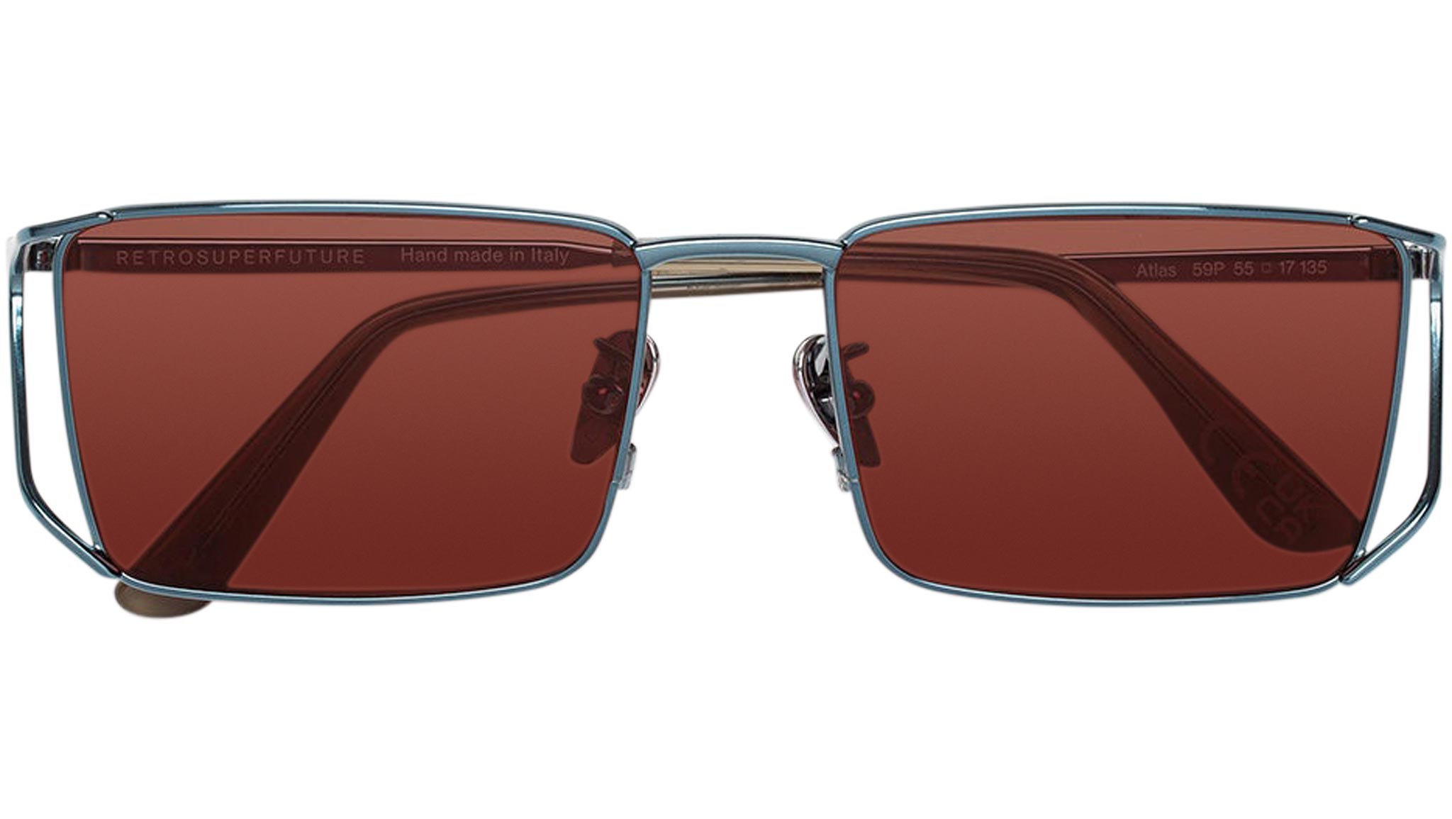 An elevated version of essential metal shapes, Atlas is a low-riding, squared silhouette with a distinctive street edge. The model’s unique construction, crafted from lightweight tubular steel, features a hollow detail on the sides, with slender temples and a single nose-bridge. Atlas is a fresh and modern shape that comes with a teal finish and burgundy lenses. Sizes: R Lens Width: Frame Front: Frame Side: Product Code Size R: 59P