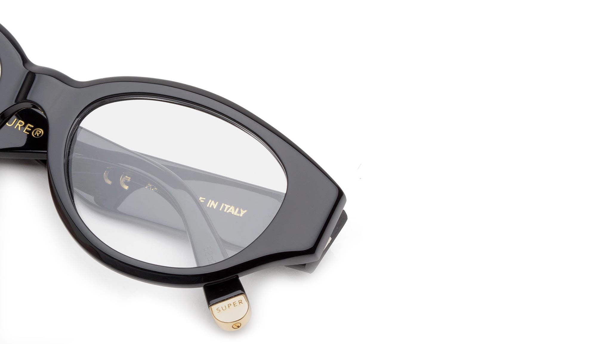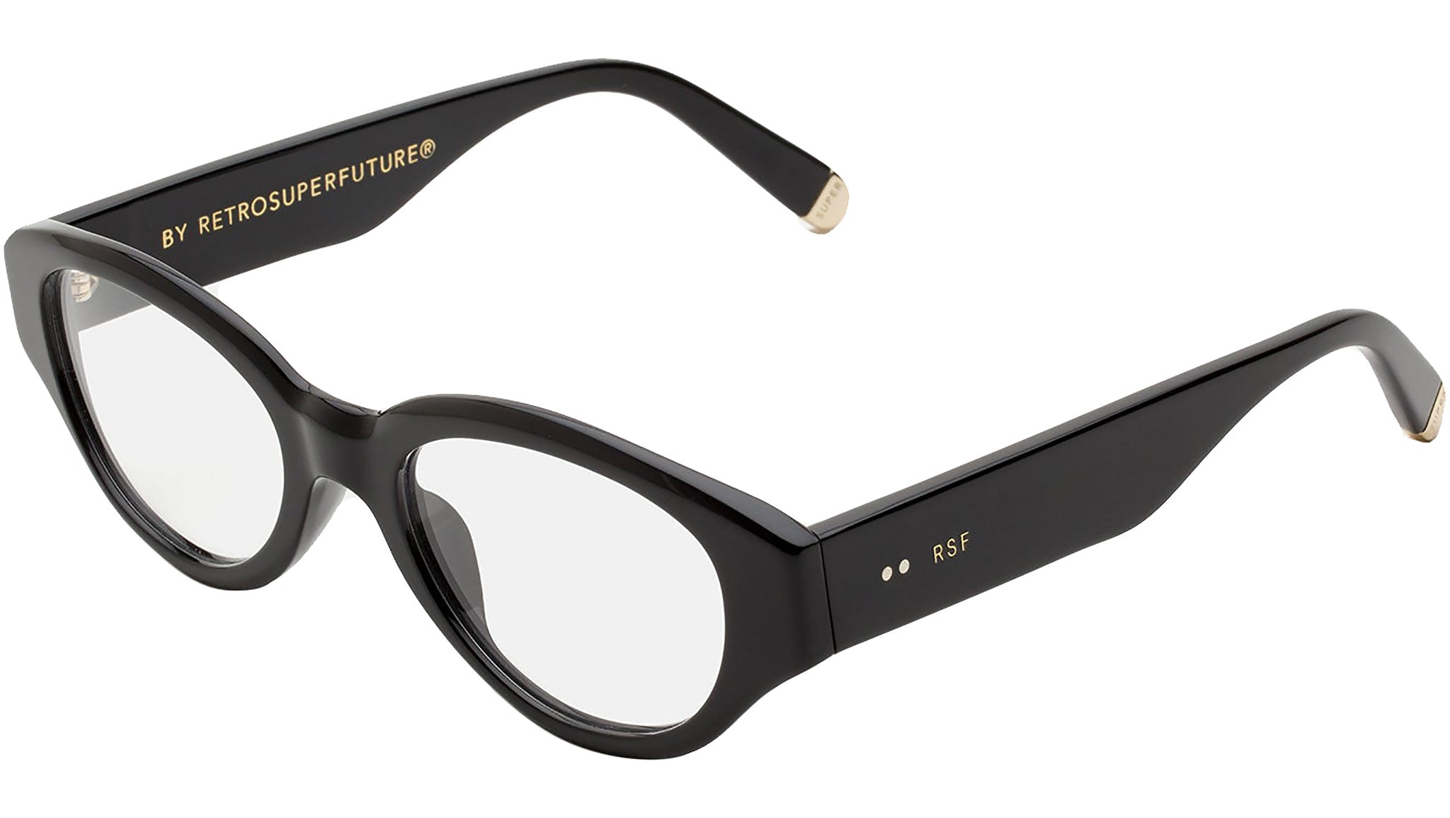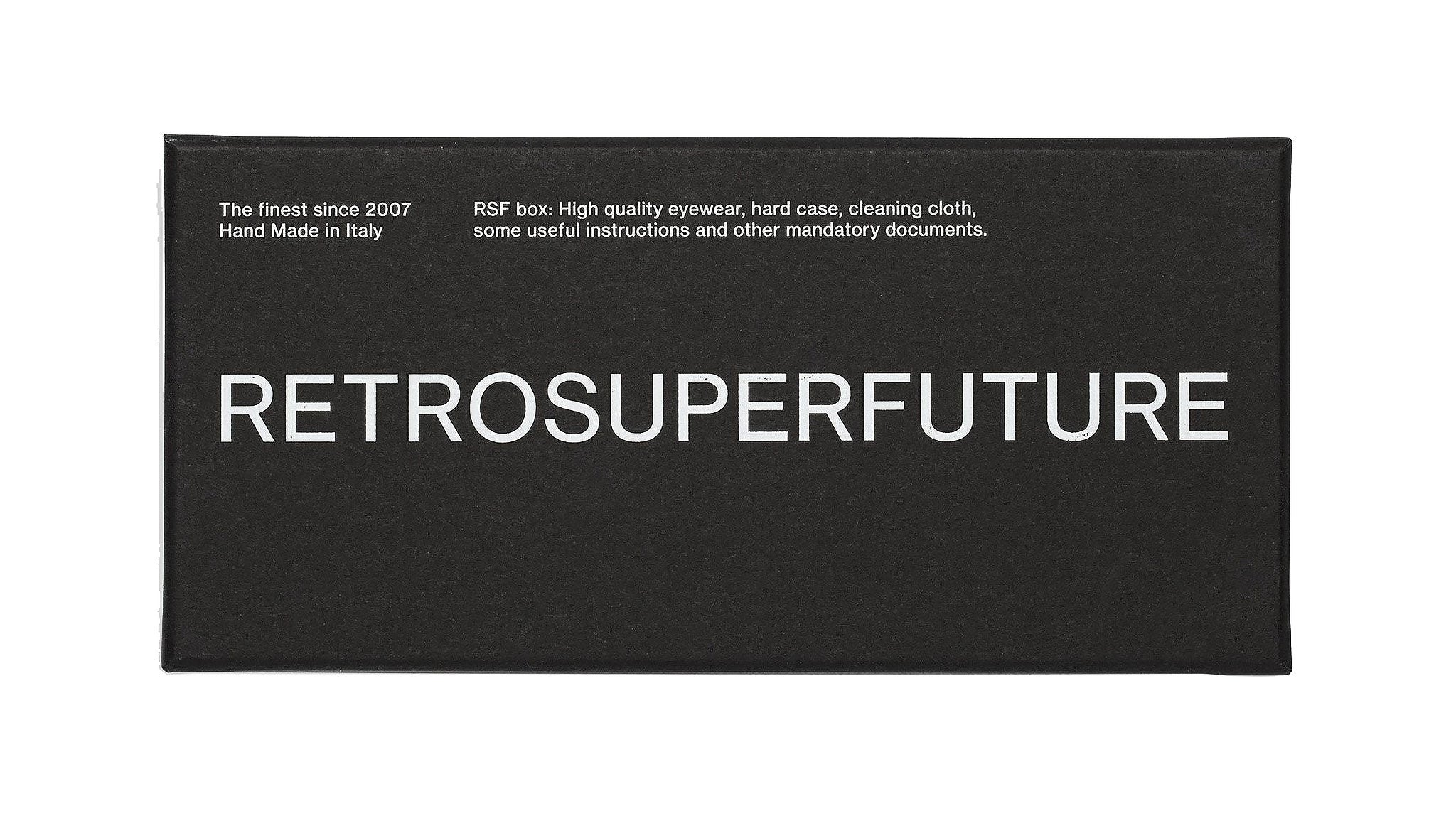 Retrosuperfuture Drew Mama Optical takes an absolute icon of SUPER’s designs, reinterpreting it for optical use. The model is characterized by thick temple tips and oversized, oval lenses crafted from shiny black acetate. Prescription lenses not included. The box contains a hard case and a cleaning cloth. Sizes: R Lens Width: 51 mm. Frame Front: 145 mm. Frame Side: 145 mm. Product Code Size R: HDD