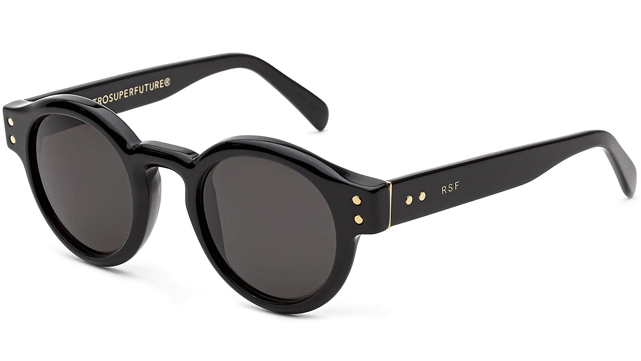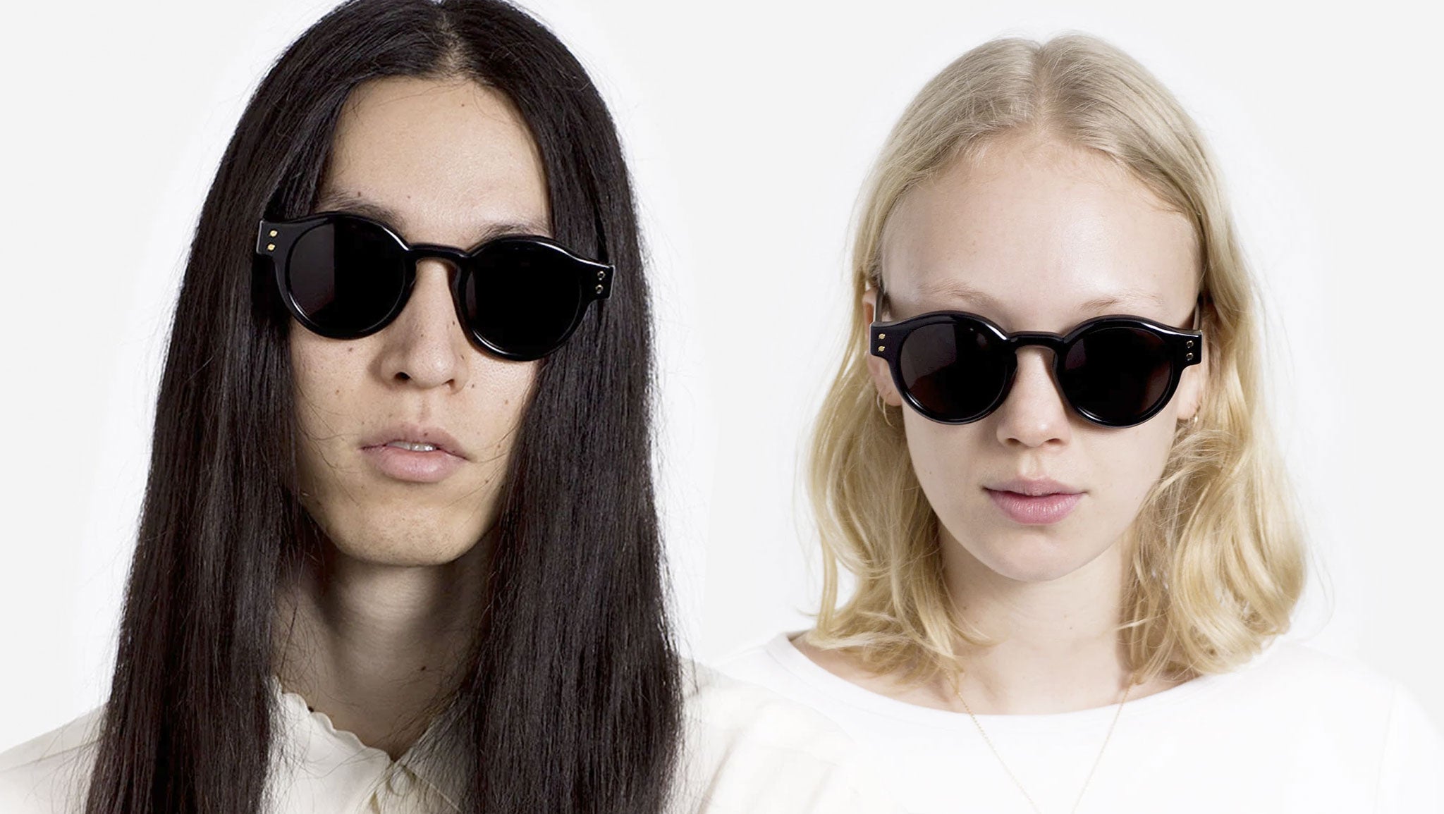Eddie Black blends unexpected juxtapositions and sophisticated formal references into a bold silhouette. This model was crafted out of a thick slab of acetate, softened by curves around the lenses, squared hinges and minute metalwork. Eddie Black comes in a shiny black acetate and black lenses by Zeiss. The box contains a semi-hard case and a cleaning cloth.
