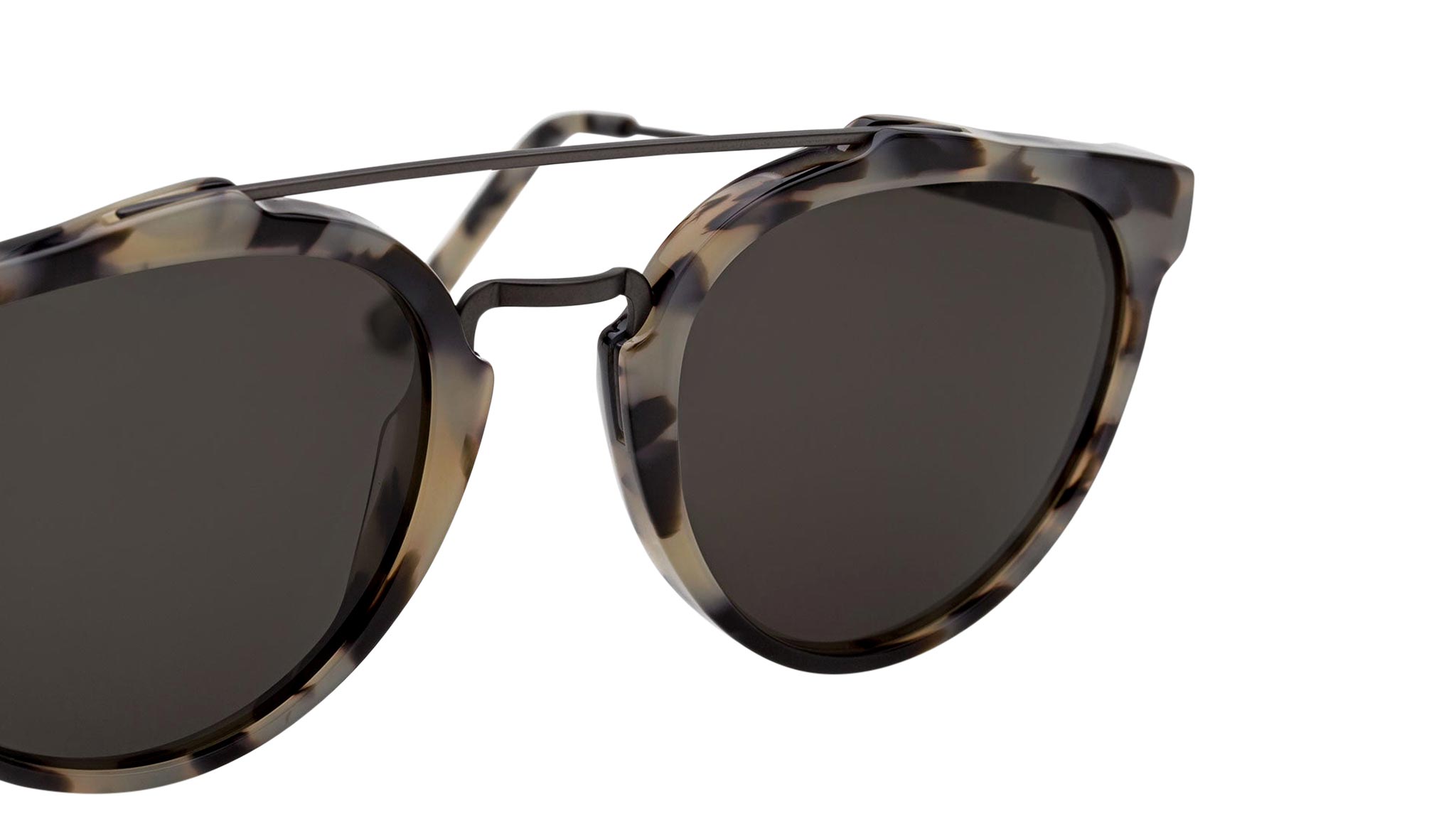 The Giaguaro Puma is an ultra-classic model, combining a unique metal bridge and carefully carved acetate structure into a casual, sophisticated silhouette. This version features spotted black-and-white acetate and lenses by ZEISS in black.