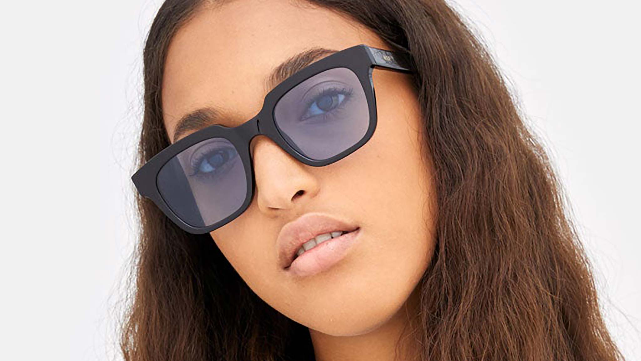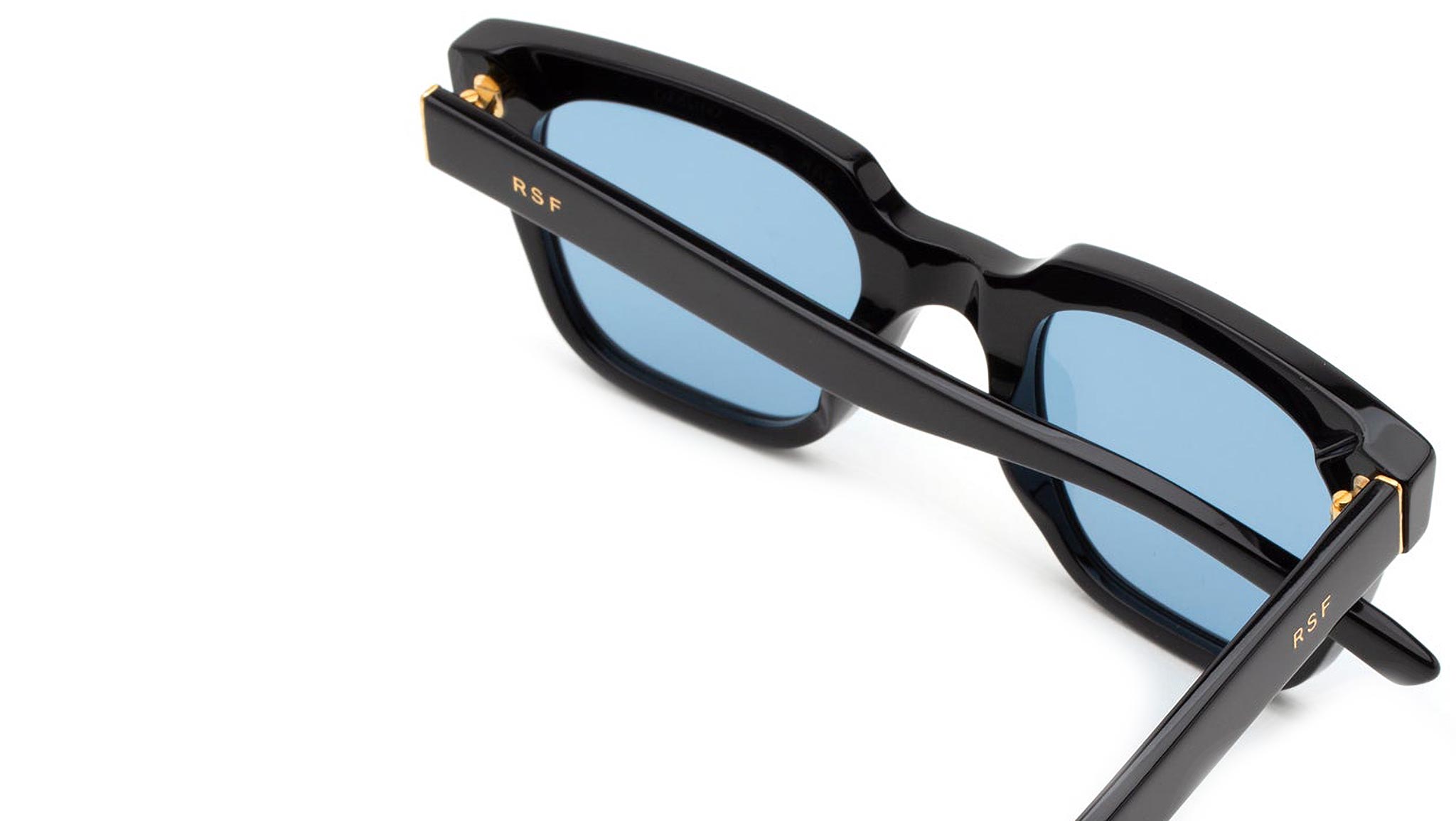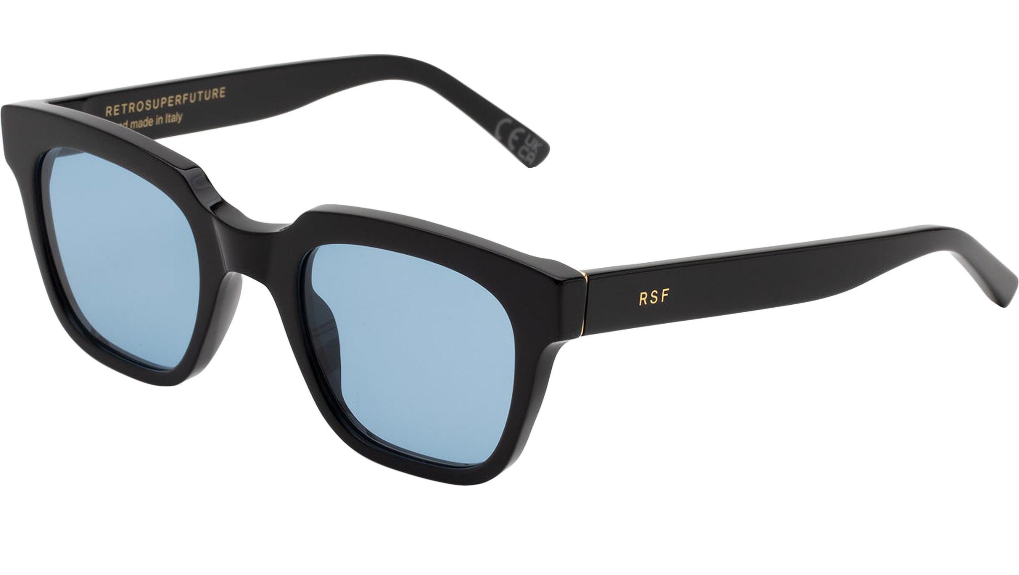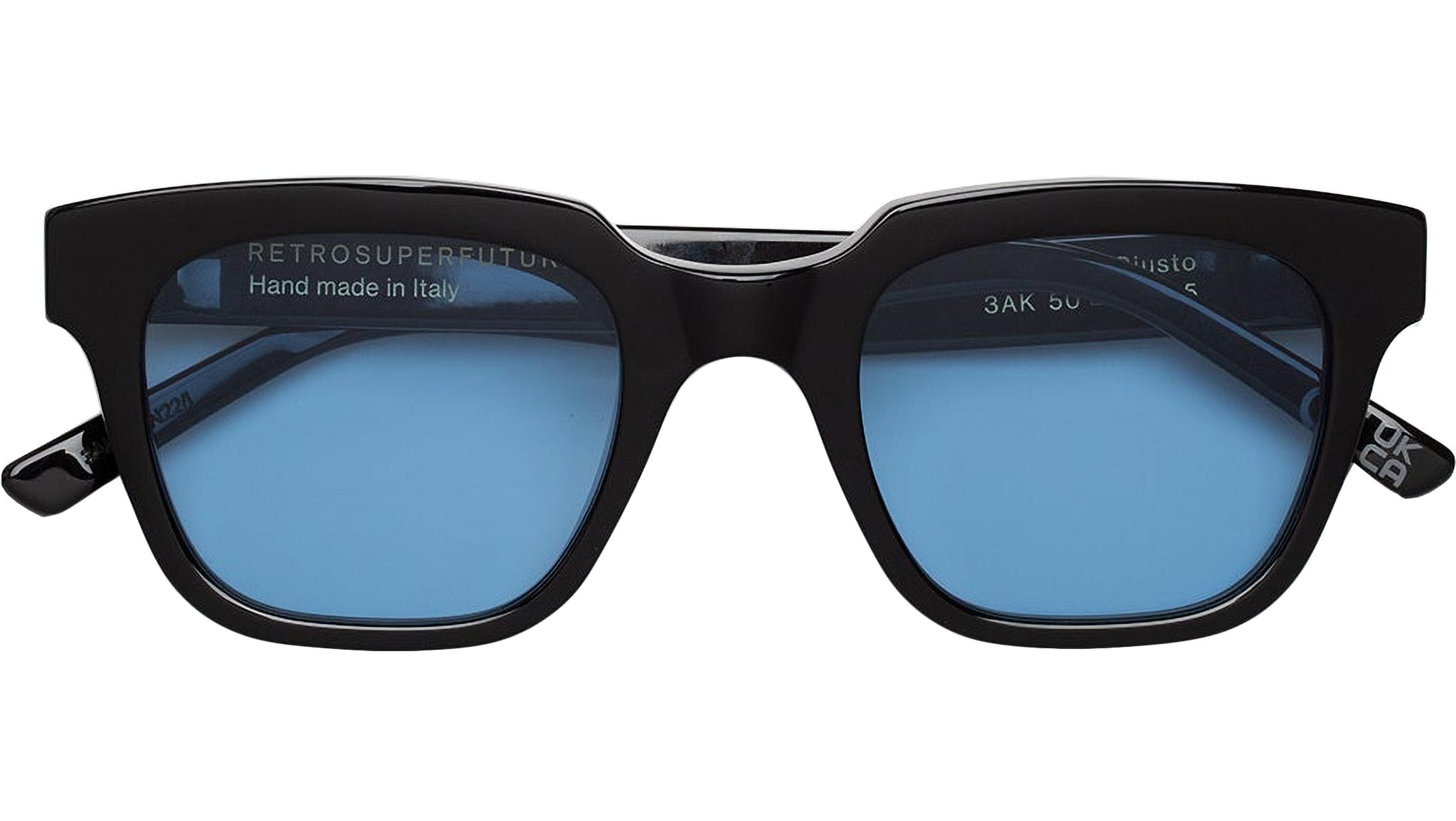 A timeless classic design, Giusto is an essential frame characterized by a squared profile and low nose-bridge. A sharp reinterpretation of the iconic 1950s design school, Giusto features thick and sturdy acetate rims and wide geometric lenses. This version of Giusto comes in a shiny black acetate with bold blue lenses. Sizes: R Lens Width: 50 mm. Frame Front: 146 mm. Frame Side: 145 mm. Product Code Size R: 3AK