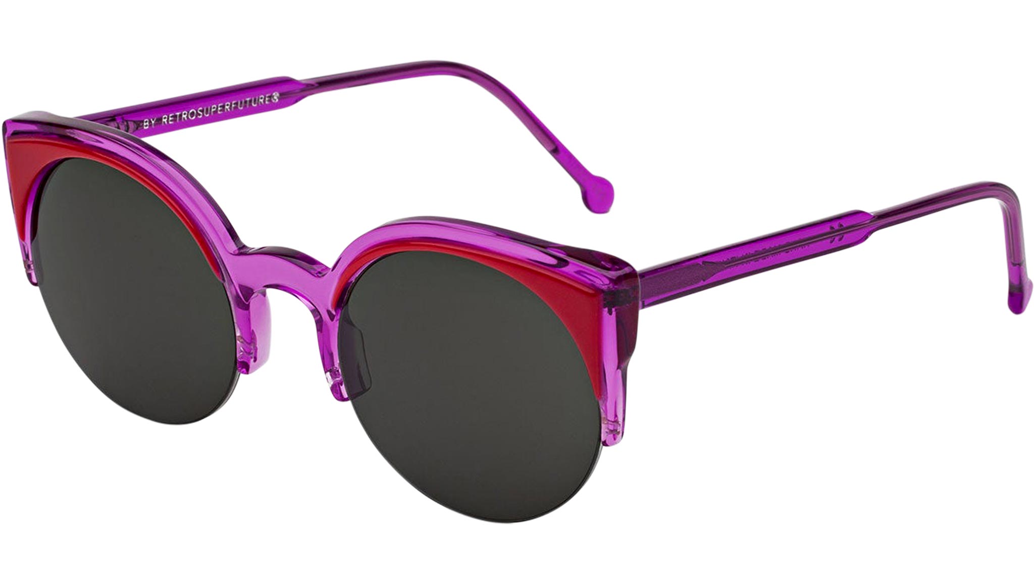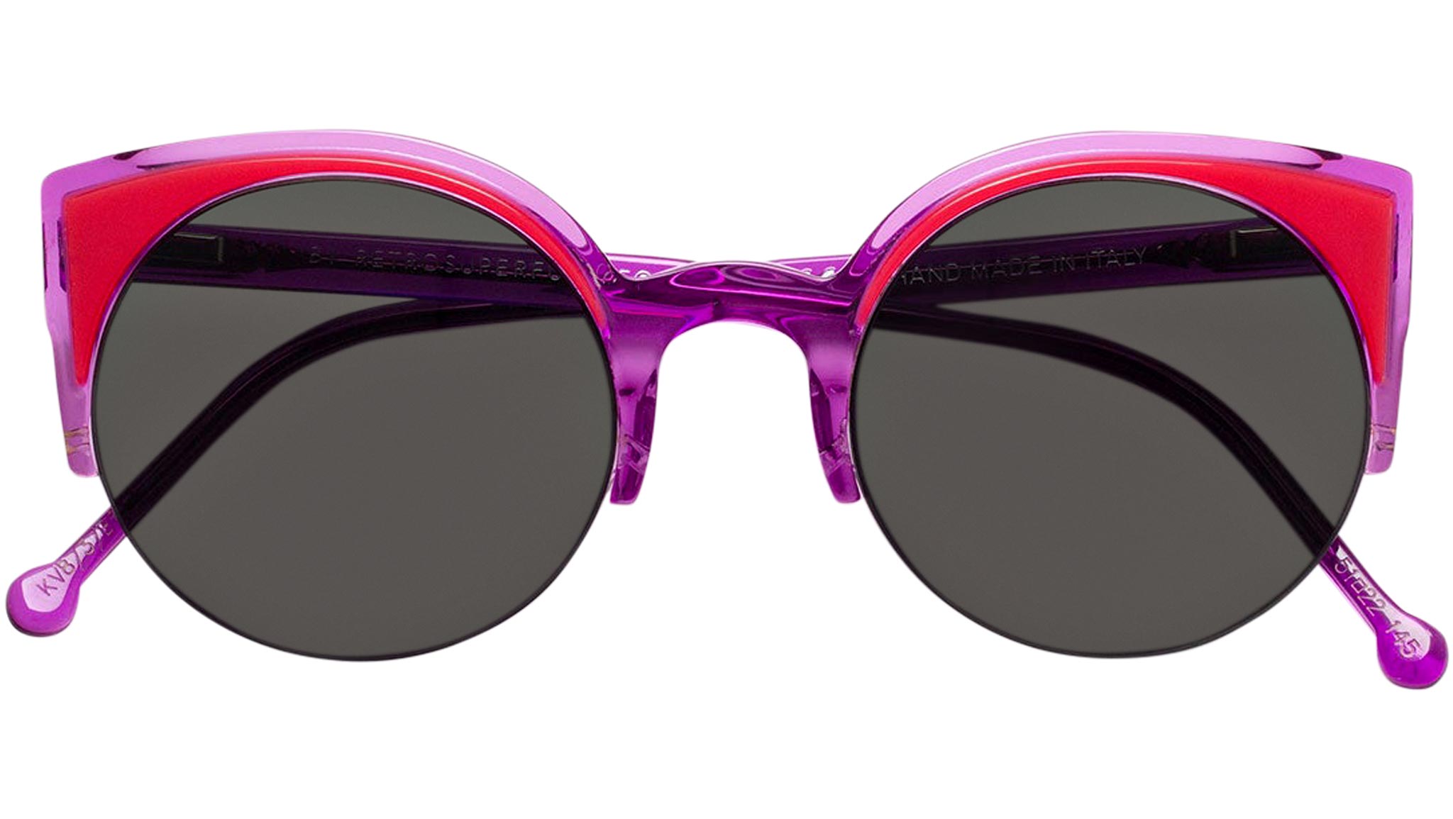 Retrosuperfuture sunglasses model Lucia Surface Uva. Sizes: R Lens Width: 51 mm. Frame Front: 132 mm. Frame Side: 145 mm. Product Code Size R: KV8