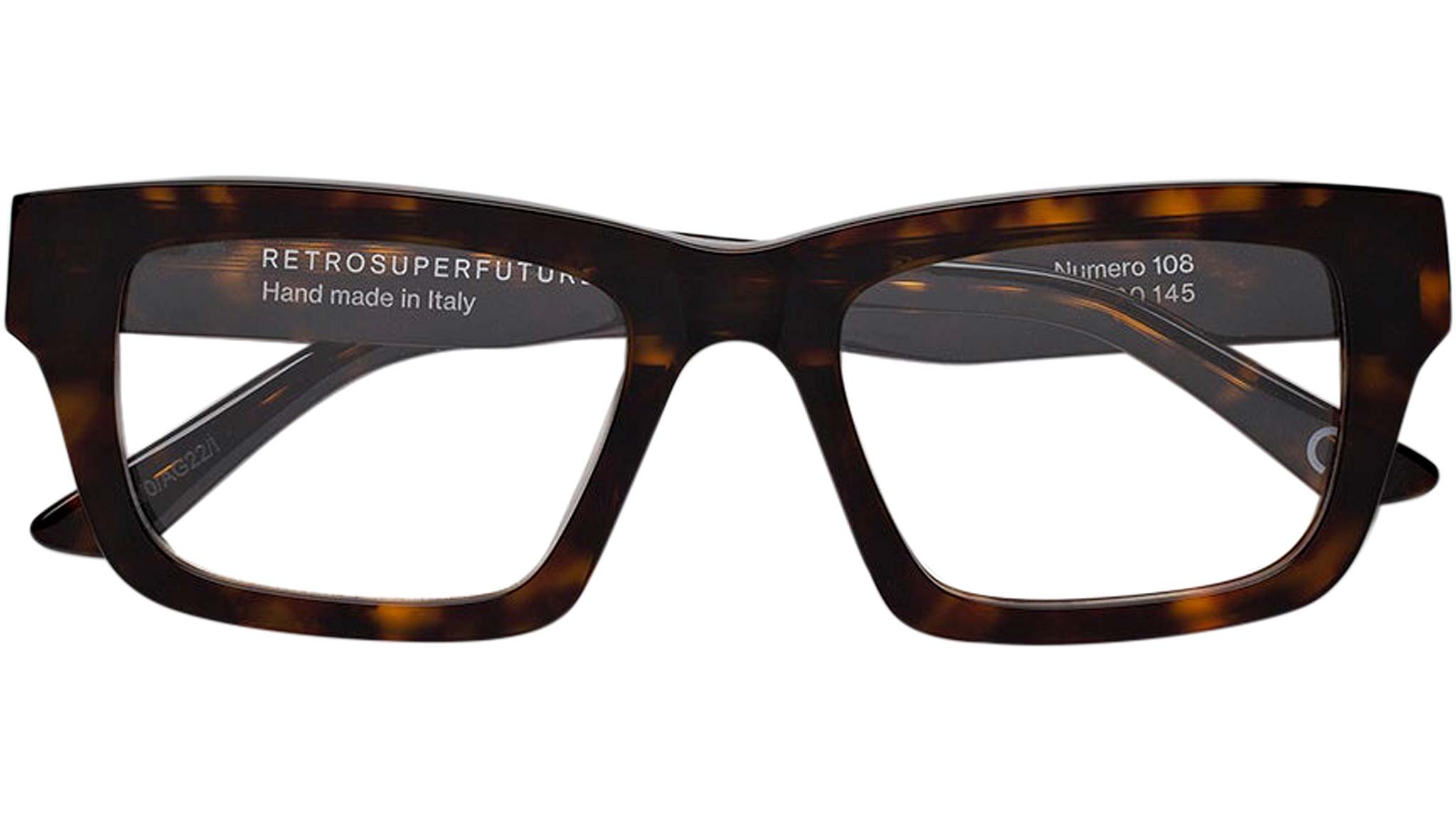 Sharp angles and precise geometries define Numero 108, a sleek all-day-everyday frame with a street edge. Angular lenses and pointed temples give this shape its distinctive features by elevating timeless modernist aesthetics. RSF’s signature sturdy acetate construction has been carved to offer a lighter, more functional and fitting design for everyday use, while still resulting in a bold shape full of character. Numero 108 comes in a vibrant 3627 Havana acetate. Sizes: R Lens Width: 53 mm. Frame Front: Frame Side: 145 mm. Product Code Size R: 7G9