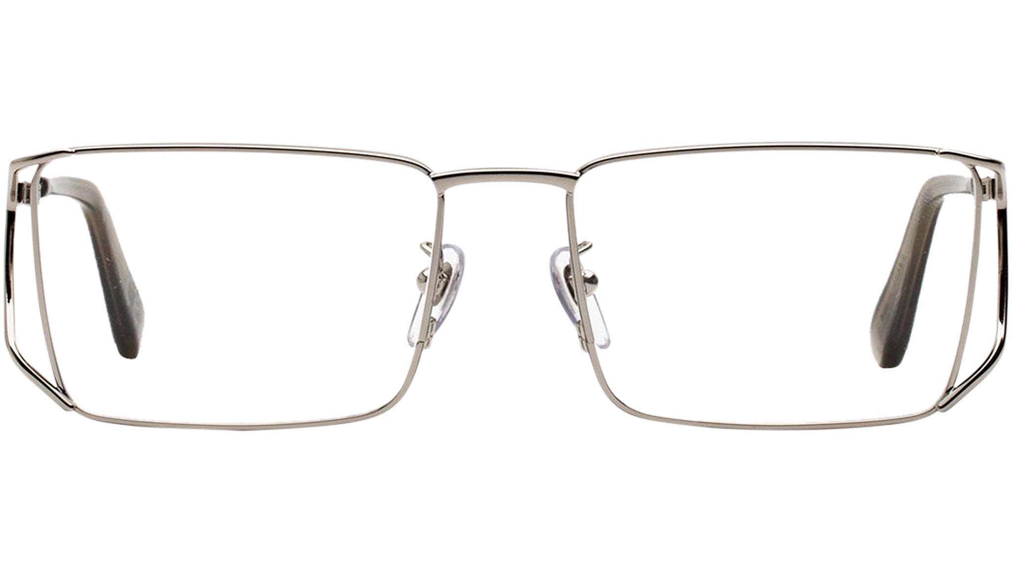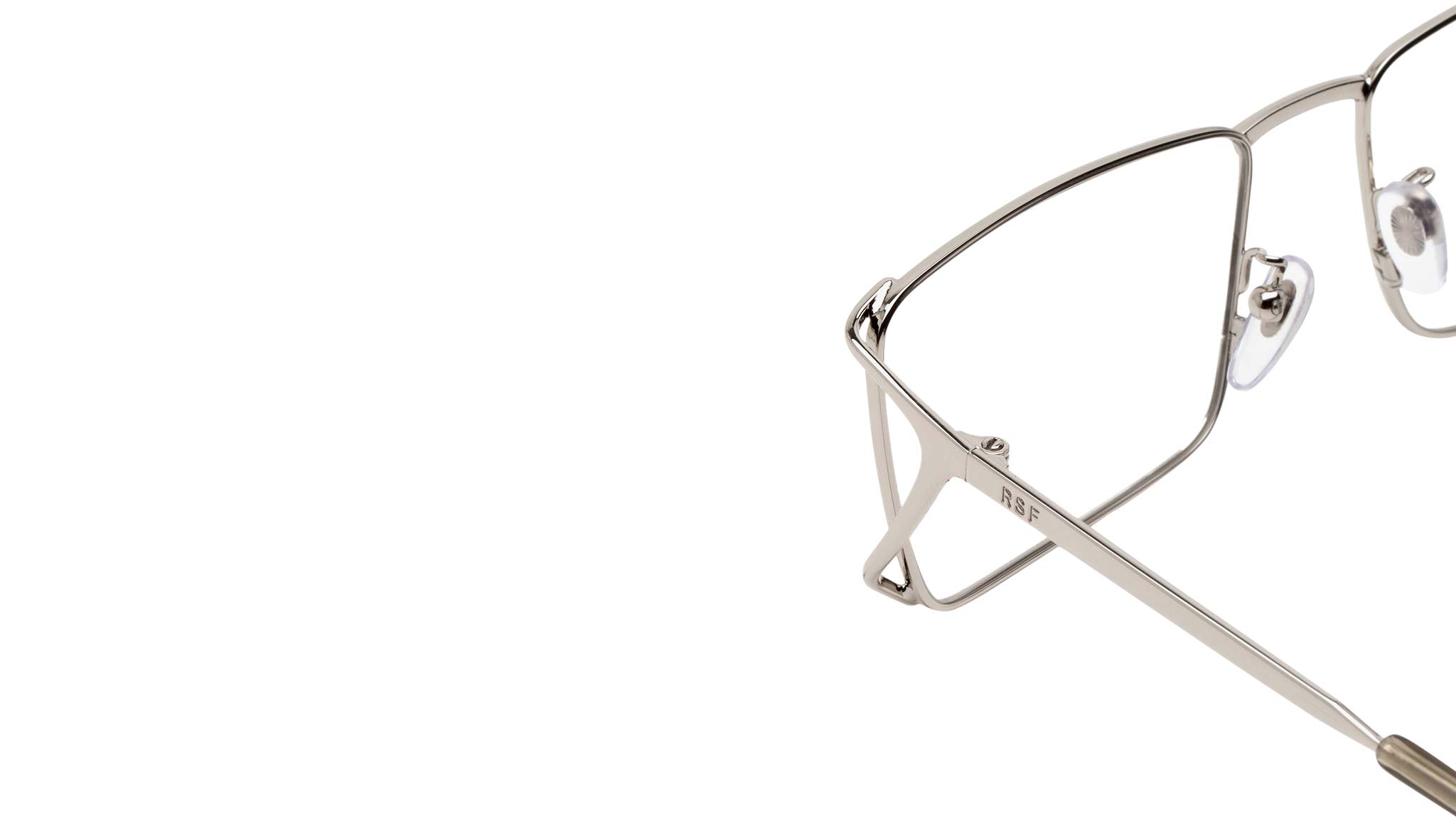 An elevated version of an essential metal frame, Numero 115 is a modern geometric silhouette. The shape has a unique architectural quality, with its squared lenses held together by an innovative metal construction: a fork-like design on the temples crafted from tubular steel highlights RSF’s exceptional know-how in eyewear manufacture. This is a visually sharp yet wearable Optical frame that comes in a classic silver finish. Sizes: R Lens Width: Frame Front: Frame Side: Product Code Size R: 8C6