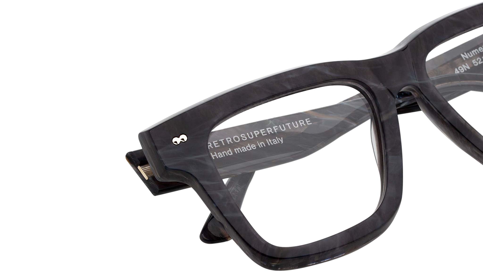 Numero 116 by Retrosuperfuture is a bold Optical frame characterized by an oversized design that reinterprets iconic sun shapes for everyday use. The model features sturdy acetate rims, a key feature of RSF eyewear, chiseled for lightness and comfort, without compromising its thick build. This is a model designed for those looking for a statement yet timeless piece of eyewear. This version comes in a stone acetate pattern. Sizes: R Lens Width: 51 mm. Frame Front: Frame Side: 145 mm. Product Code Size R: 49N