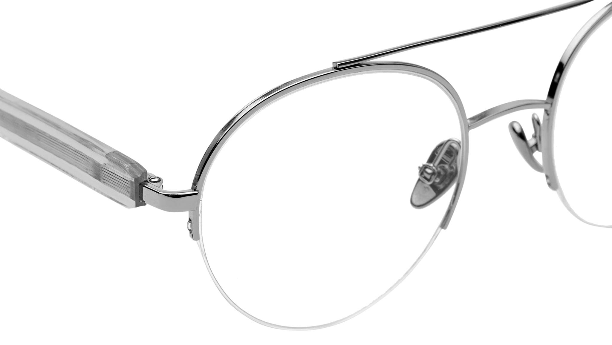 Numero 24 by Retrosuperfuture is a bold piece inspired by retro-style eyewear designs, adapted for contemporary use. The frame sports a crystal acetate and silver metal that maintain high technical qualities required of everyday eyewear. Prescription lenses not included. The box contains a hard case and a cleaning cloth.
