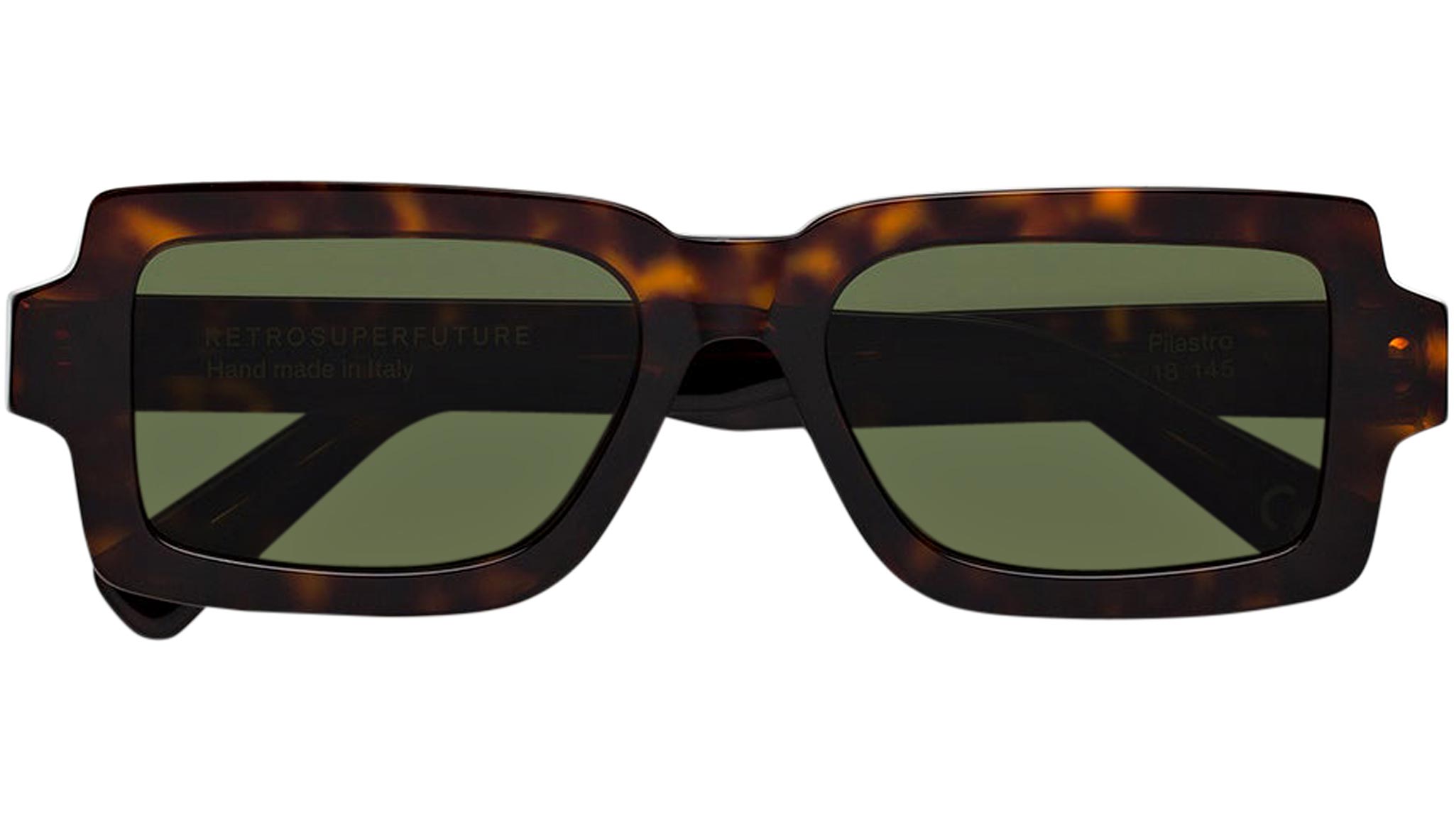 Pilastro is a sharp contemporary silhouette characterized by a unique geometric design. The model’s innovative shape features rectangular rims that stand out for their particularly wide and low-riding proportions. The thick acetate construction of the Pilastro is a crossover between 1970s exuberance and 2000s street-edge. Conceived as a unisex shape, this version of the Pilastro features a dark 3627 Havana acetate with bottle green lenses. Sizes: R Lens Width: 54 mm. Frame Front: Frame Side: 145 mm. Product Code Size R: 6SN